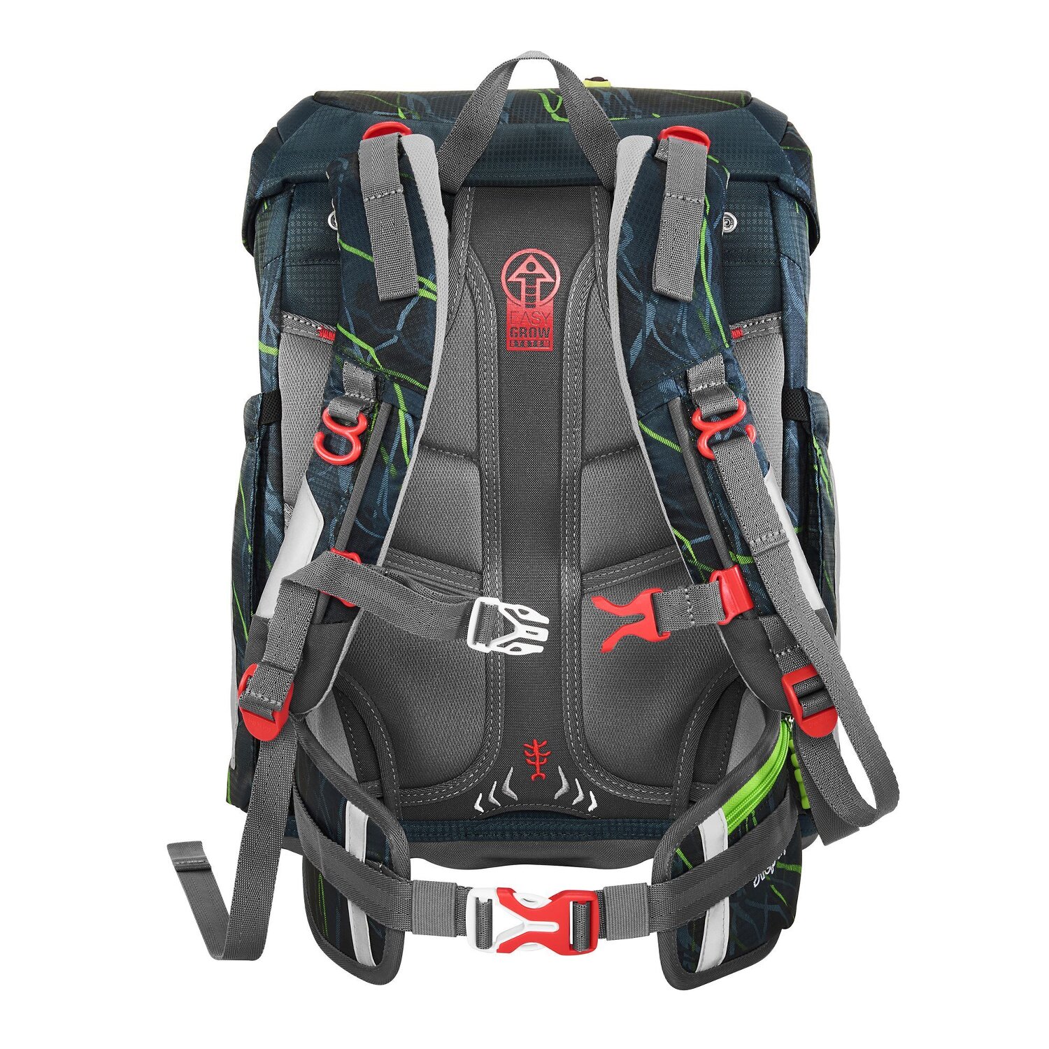 Der Giant Schulranzen begeistert durch besonders leichtes wasserabweisendes Material aus PET-Flaschen, großes Fassungsvermögen und das höhenverstellbare Tragesystem, das sich Ihrem wachsenden Kind anpassen kann. Die ergonomische Rückenpartie, das Rückenpolster, sowie Hüftflosse, höhenverstellbarer und abnehmbarer Brustgurt sowie Lageverstellriemen sorgen für ein optimales Trageerlebnis. Für die individuelle Gestaltung können Magic Mags, ganz nach dem Geschmack Ihres Kindes, angebracht werden. Im geräumigen Hauptfach, das mit praktischem Fidlock-Magnetverschluss geschlossen wird, gibt es jede Menge Platz für alles, was im Unterricht gebraucht wird, zusätzlich können die zwei Seitentaschen nach außen wachsen und so im Inneren für genügend Stauraum sorgen. Das Mäppchen kann platzsparend im Schulranzen-Deckel verstaut werden. Set bestehend aus: Schulranzen, Federmäppchen (komplett bestückt mit Markenstiften), Schlamperetui, Sportbeutel und 3-teiligem Magic Mags Set. Schulranzen Außenmaß: 28 cm x 21 cm x 37,5 cm / Gewicht: ca. 990 g / Volumen: ca. 19 l
