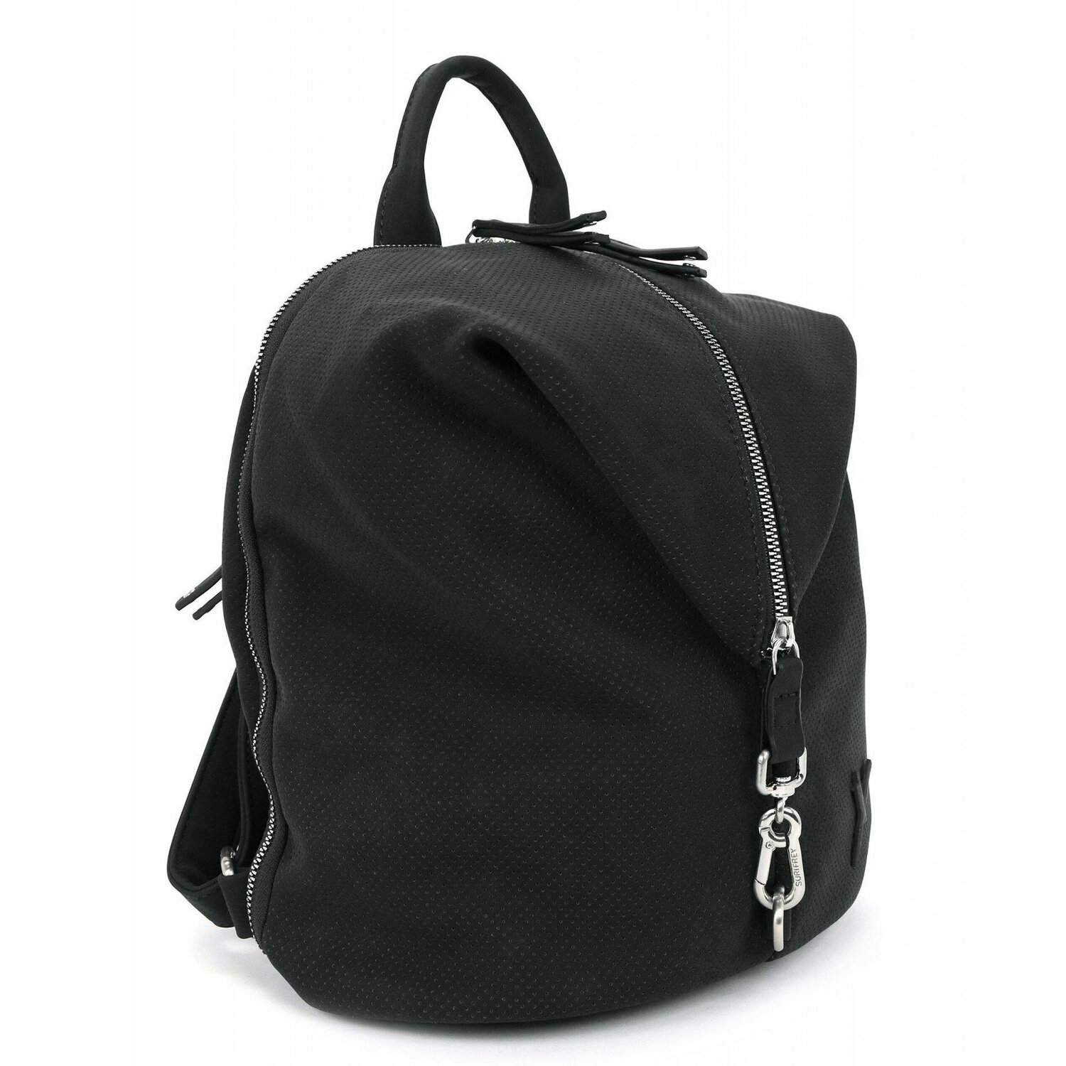 Stylischer und praktischer City Rucksack von Suri Frey aus weichem perforiertem Material in Lederoptik mit Reißverschluss und Karabiner. Er verfügt über ein übersichtliches Hauptfach sowie weitere Fächer und Taschen und bietet damit optimale Bedingungen, um die wichtigsten Habseligkeiten zu verstauen. Der modische Alltagsbegleiter in ungewöhnlichem Design.