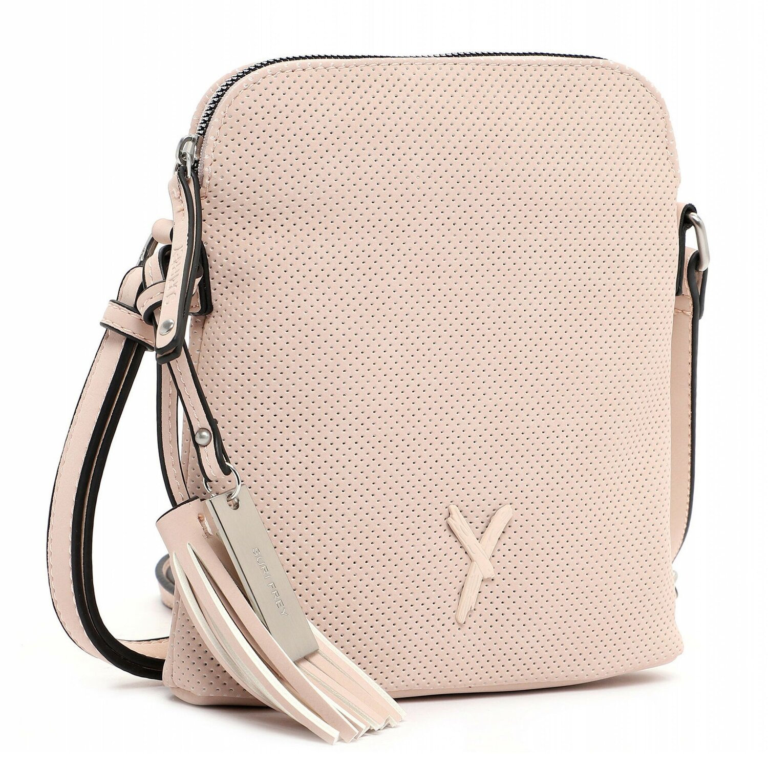 Schöne Tasche von Suri Frey aus weichem perforiertem Material in Lederoptik mit verstellbarem Umhängeriemen. Sie verfügt über ein übersichtliches Hauptfach, zwei Reißverschlussfächer und ein Einsteckfach und bietet damit optimale Bedingungen, um die wichtigsten Gegenstände zu verstauen.