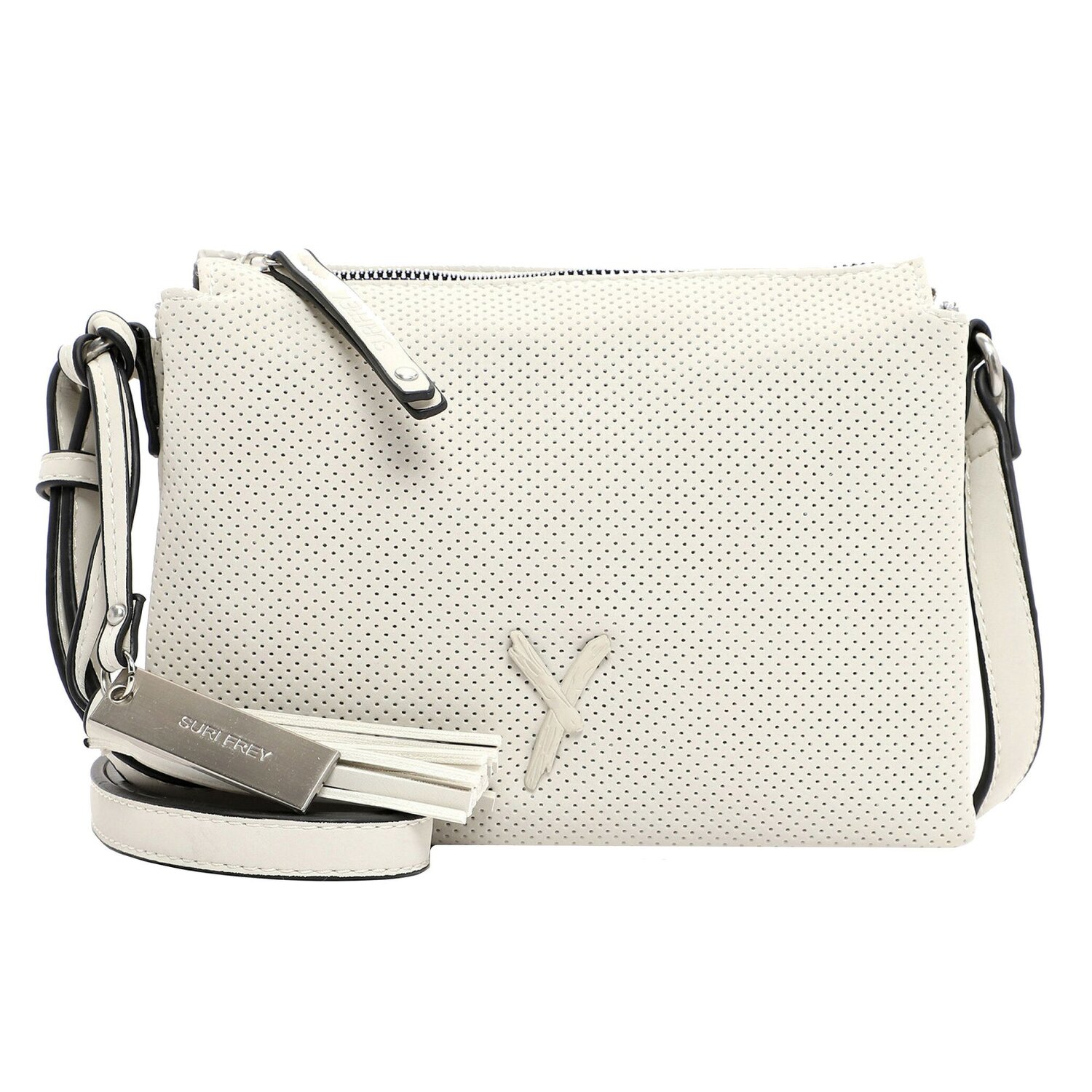 Schöne Tasche von Suri Frey aus weichem perforiertem Material in Lederoptik mit verstellbarem Umhängeriemen. Sie verfügt über ein übersichtliches, unterteiltes Hauptfach sowie zahlreiche Nebenfächer und bietet damit optimale Bedingungen, um die wichtigsten Gegenstände zu verstauen.