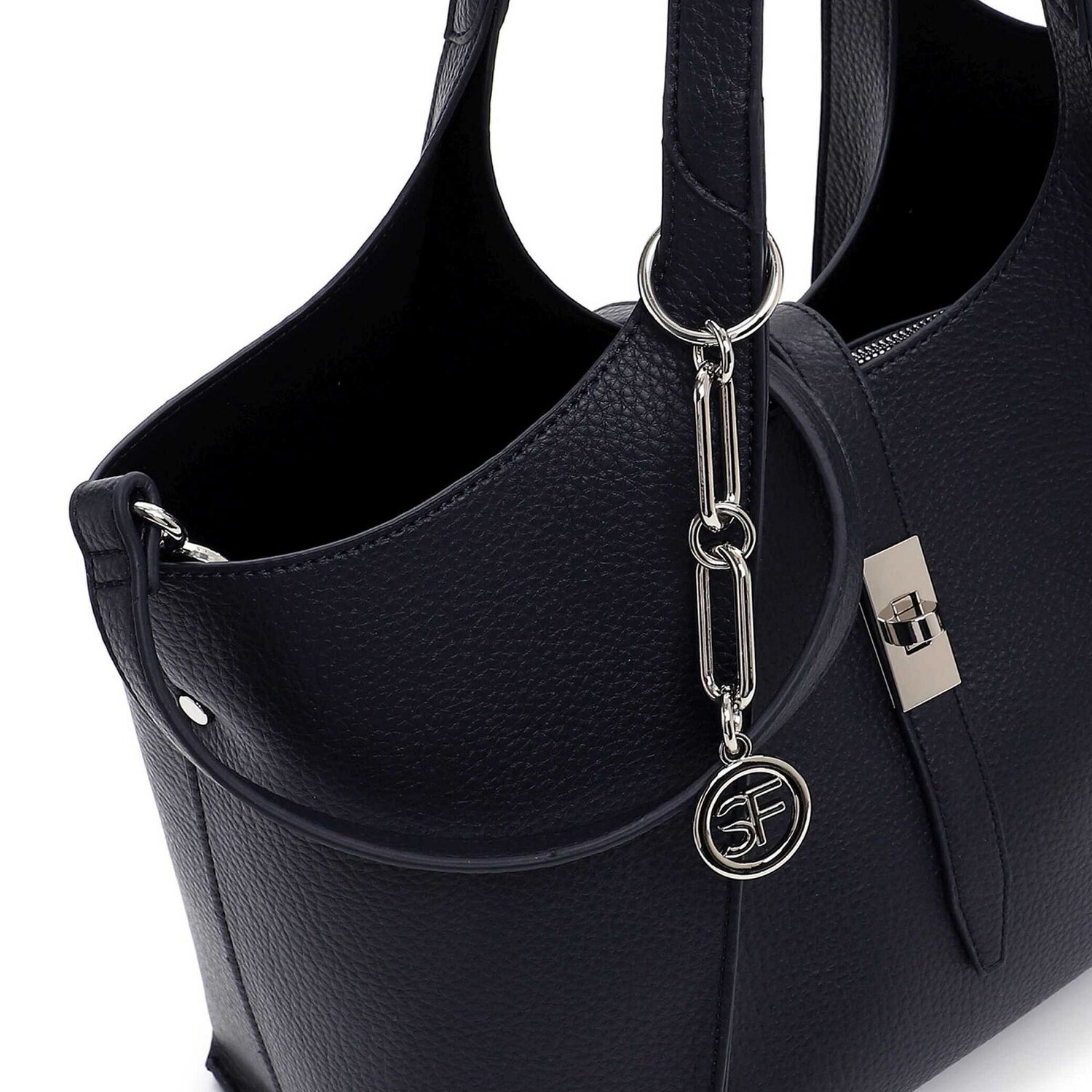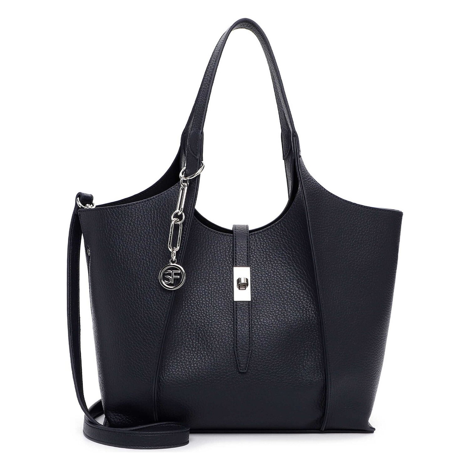 Die Shoppertasche von Suri Frey, aus der exklusiven SFY Daggy Serie, ist eine stilvolle Begleiterin, speziell für Damen. Sie verfügt über ein flottes Design mit Schulterband sowie Umhängeriemen und bietet vielfältige Trageoptionen für den Alltag. Gefertigt aus hochwertigem Polyurethan, punktet die Tasche mit ihrer Robustheit und Langlebigkeit, ohne dabei Kompromisse im Stil einzugehen. Das geräumige Innere mit praktischem Reißverschlussfach und zusätzlichen Innenfächern erlaubt eine vorteilhafte Organisation Ihrer Habseligkeiten. Eine herausnehmbare Innentasche bietet zusätzlichen Platz. Der Twist Lock Drehverschluss sichert Ihre Gegenstände spielend leicht. Anschaffen, verschönern Sie Ihren Style!