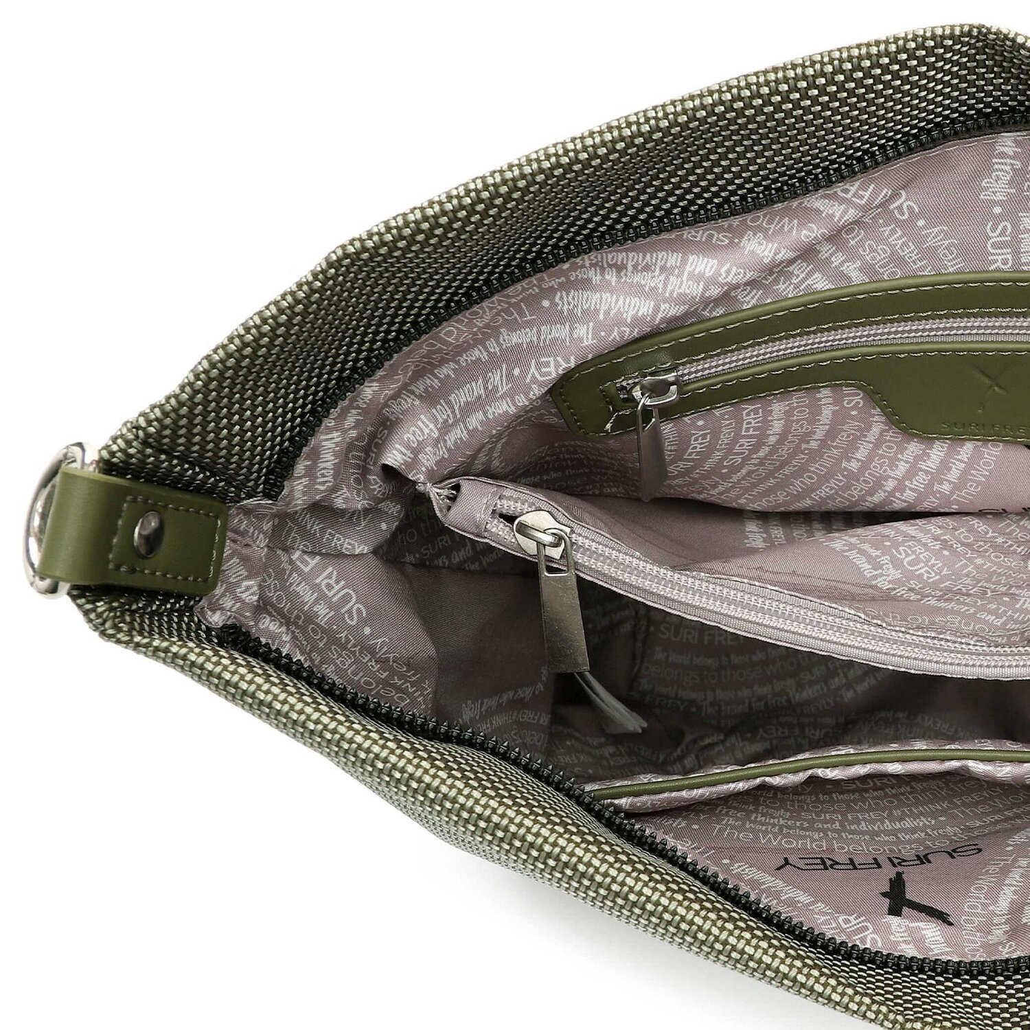Schöne Umhängetasche von Suri Frey aus Nylon mit abnehmbarem, verstellbarem Umhängeriemen. Sie verfügt über ein übersichtliches Hauptfach, zwei Reißverschlussfächer, zwei Steckfächer und bietet optimale Bedingungen, um die wichtigsten Gegenstände zu verstauen.