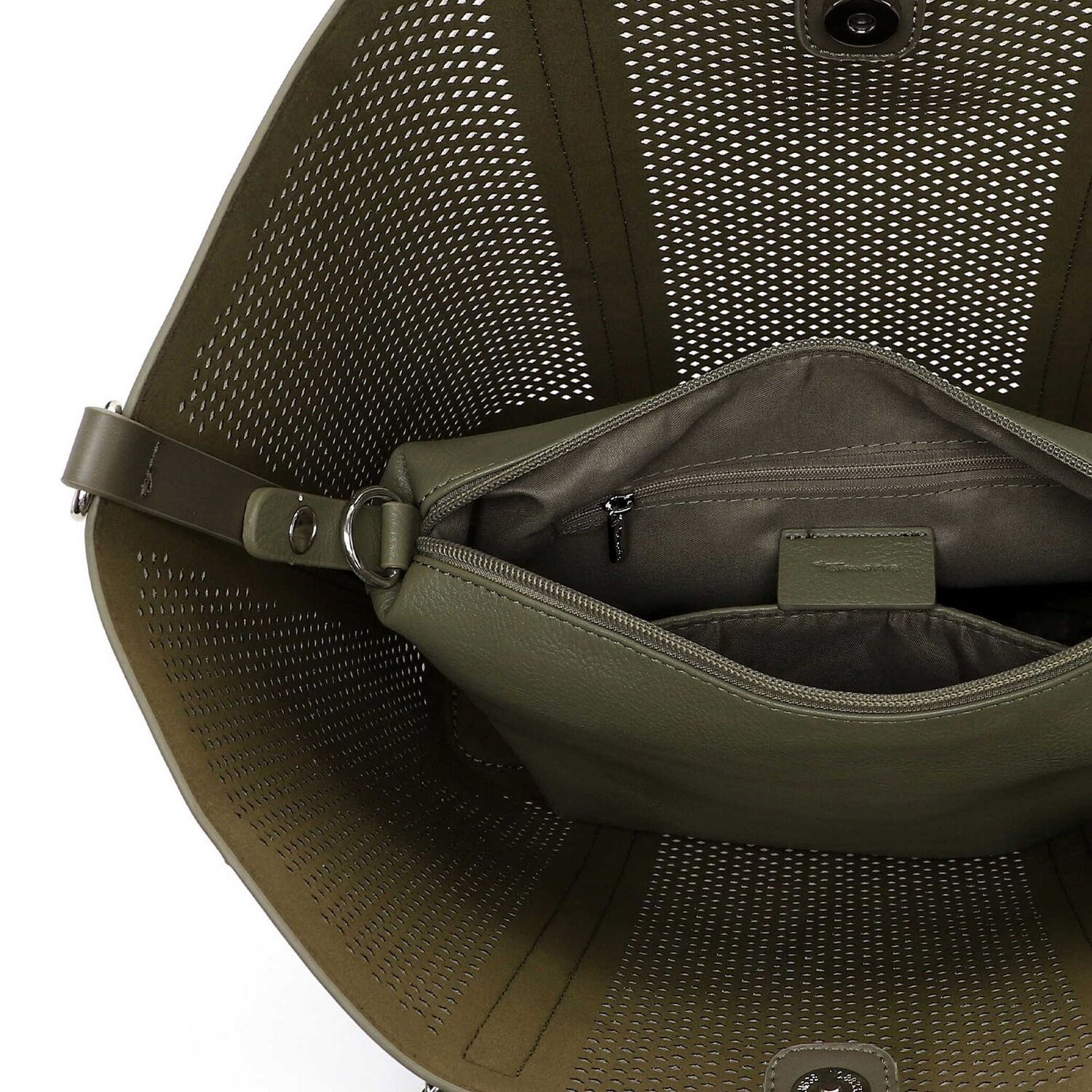 Tauchen Sie in den urbanen Lifestyle ein mit der Shoppertasche "Kendra" von der beliebten Marke Tamaris. Hergestellt aus hochwertigem Polyurethan, ist sie robust genug, um den täglichen Anforderungen standzuhalten, bietet gleichzeitig jedoch auch eine ästhetisch ansprechende Oberfläche. Die Shoppertasche besticht durch ihre inneren Eigenschaften: ein praktischer Magnetverschluss sichert Ihre persönlichen Gegenstände und innenliegende Taschen, einschließlich eines Reißverschlussfachs, bieten genügend Raum für all Ihre Essentials. Ein herausnehmbares Taschenmodul ist ein zusätzliches Highlight. Der mittellange Schulterriemen lässt sich bequem über der Schulter tragen, wodurch sie zur perfekten Begleitung für Ihre alltäglichen Abenteuer wird. Machen Sie die TAS Kendra zu Ihrem neuen Accessoire!