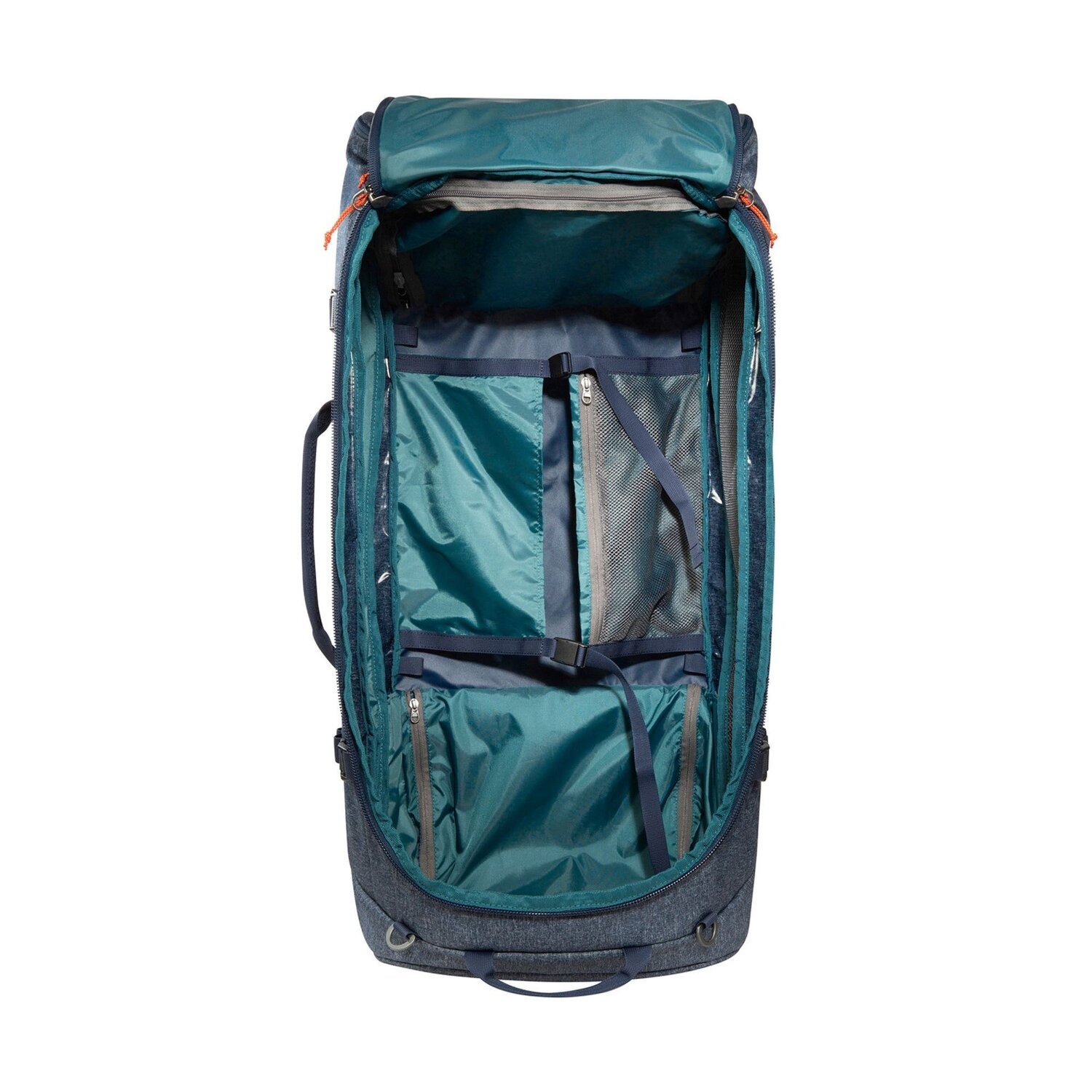 Praktische Reisetasche von Tatonka mit 2 Rollen. Die Reisetasche lässt sich zusammenfalten und in der eigenen Deckeltasche verstauen. Alternativ kann die Reisetasche auch als Rucksack getragen werden, die Träger sind in einem Fach verstaut. Durch die große Öffnung kann man die Tasche leicht Be- und Entladen. Perfekt für die nächste große Reise.