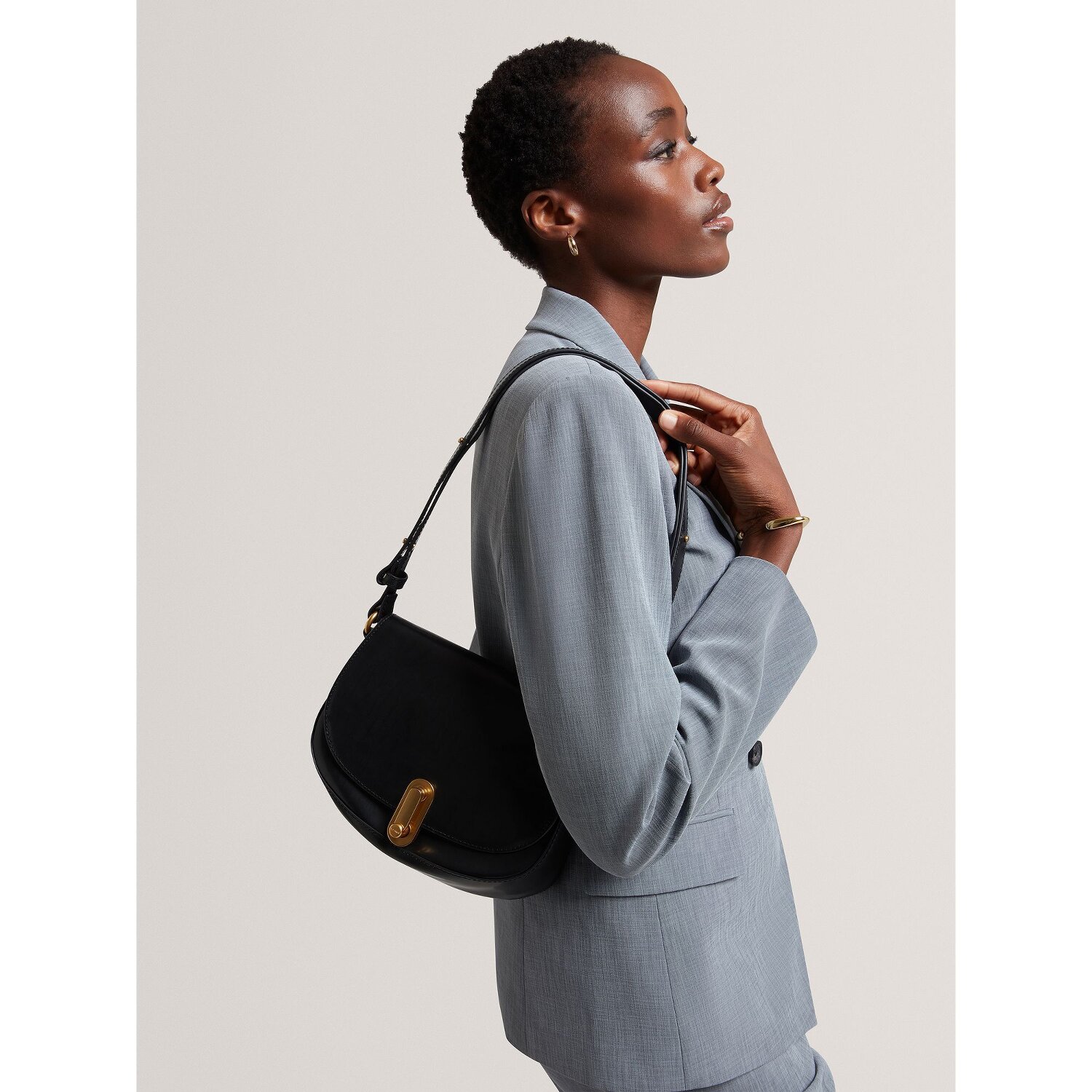 Eleganz trifft auf Funktionalität in der Ted Baker Schultertasche aus der Kkhayli Serie. Eine Tasche, die stilsichere Damen ins Auge fassen sollten. Ausgestattet mit einem praktischen Drehverschluss und Innentaschen, bietet sie genug Platz für die wichtigsten Dinge des Alltags. Das hochwertige Leder unterstreicht das Design und liefert eine schöne Haptik. Besonders hervorzuheben ist der Umhängeriemen: Seine verstellbare Länge sowie die mittlere Länge des Hauptriemens machen ihn sehr komfortabel einzustellen. Lassen Sie sich diesen stilvollen und praktischen Begleiter nicht entgehen - dieses Schmuckstück sollte in keiner Garderobe fehlen.