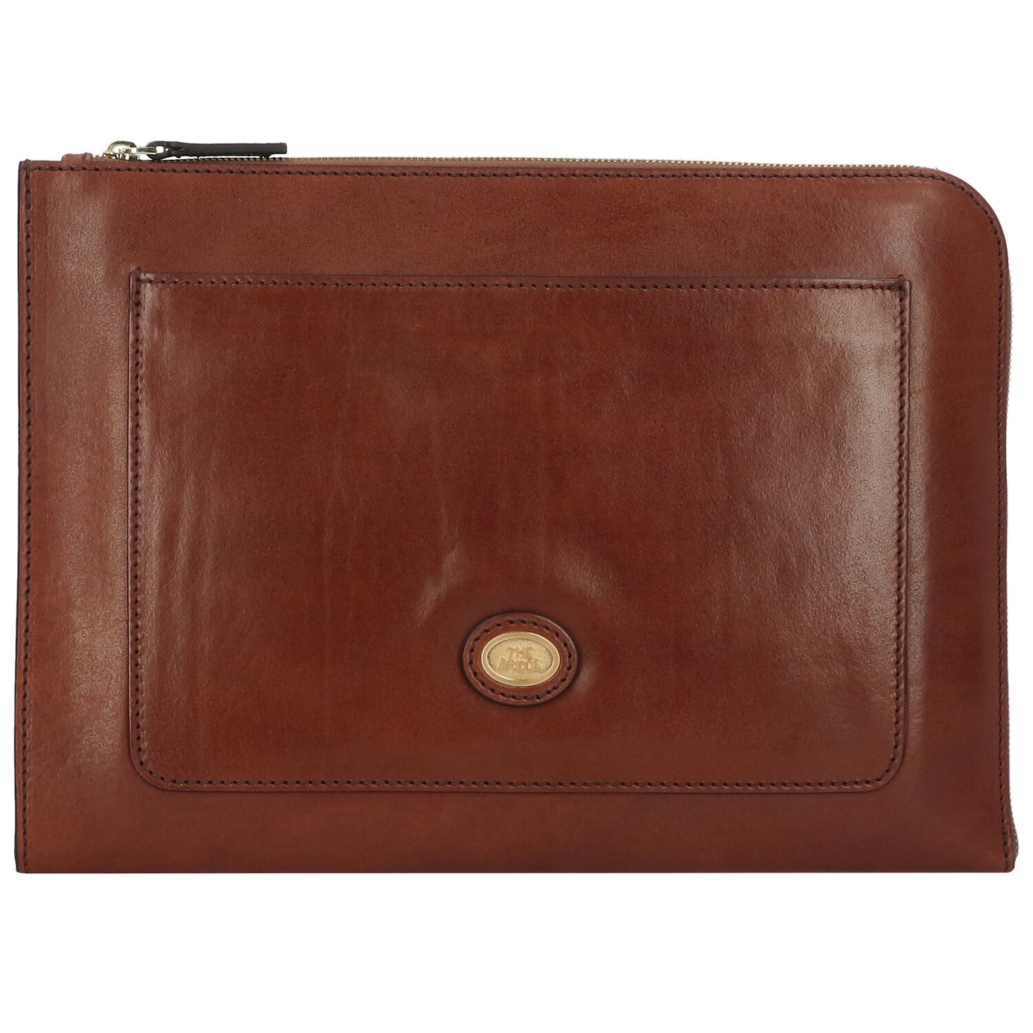 Edle Aktenmappe von The Bridge aus hochwertigem Leder mit Metall-Logo Emblem auf der Vorderseite. Sie verfügt über ein geräumiges Hauptfach für A4-Unterlagen und ist mit drei Stiftelaschen, mehreren Innenfächern und einem Steckfach auf der Frontseite ausgestattet. Perfekt als Begleiter bei der Arbeit.