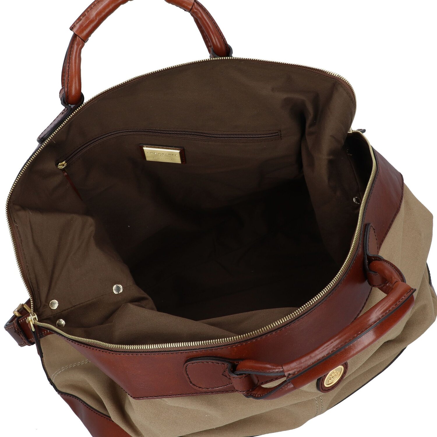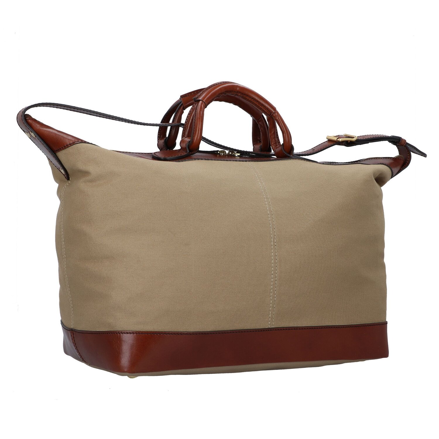 Schlicht und elegant zeigt sich der Weekender aus der Story V S-Serie von The Bridge. Die Kombination aus hochwertiger Canvas und detailverliebter Verarbeitung macht diese Reisetasche zu einem zuverlässigen Begleiter. Das geräumige Hauptfach beherbergt praktisches Reißverschlussfach und Innenfächer, die Ordnung auf Reisen leicht machen. Der robuste Tragegriff bietet stabilen Halt, während die Bodennägel der Tasche zusätzlichen Schutz verleihen. Kein spezifisches Kofferschloss, aber ein sicherer Verschluss sorgt für gebührenden Schutz des Inhalts. Zögern Sie nicht und wählen Sie diesen Allrounder für Ihre nächste Reise.