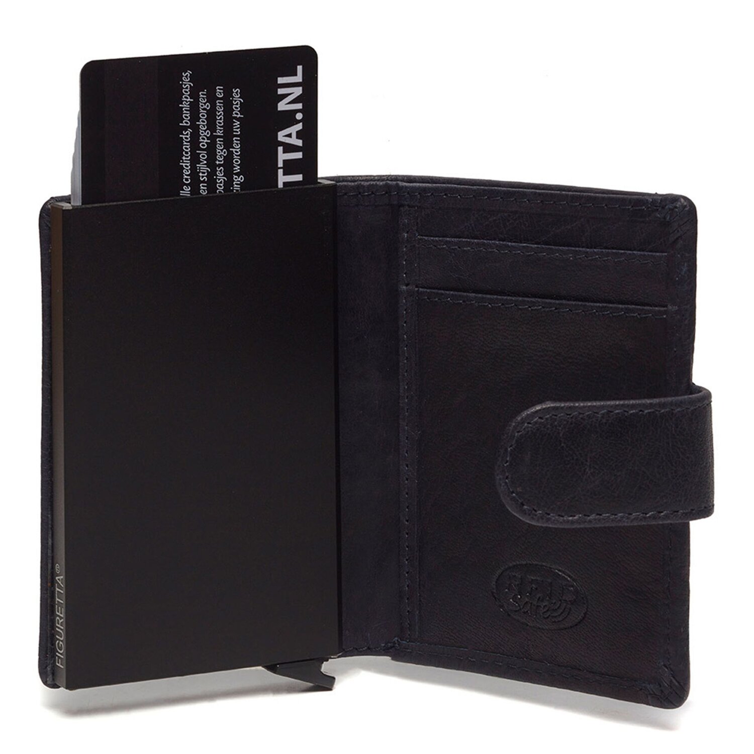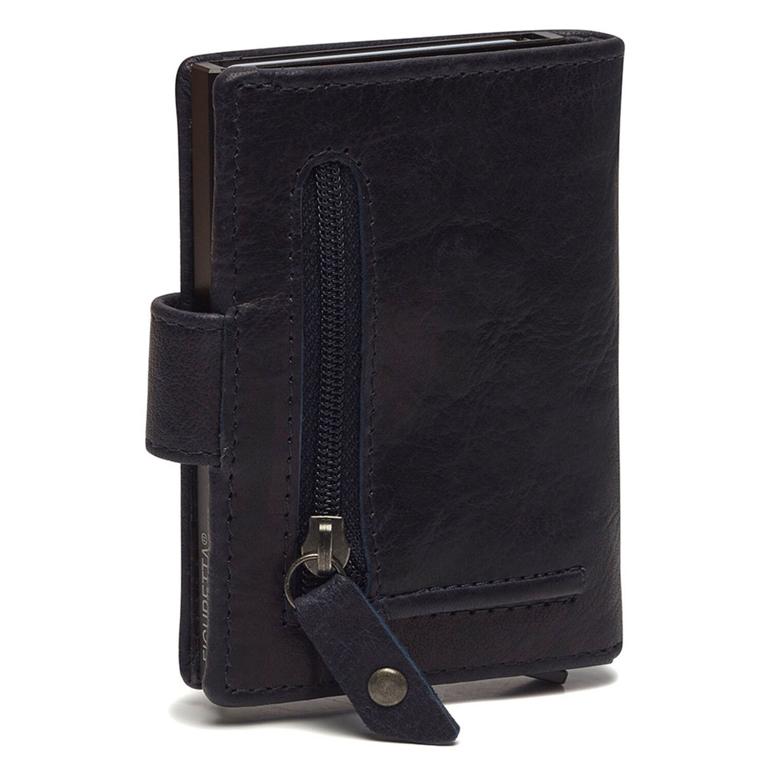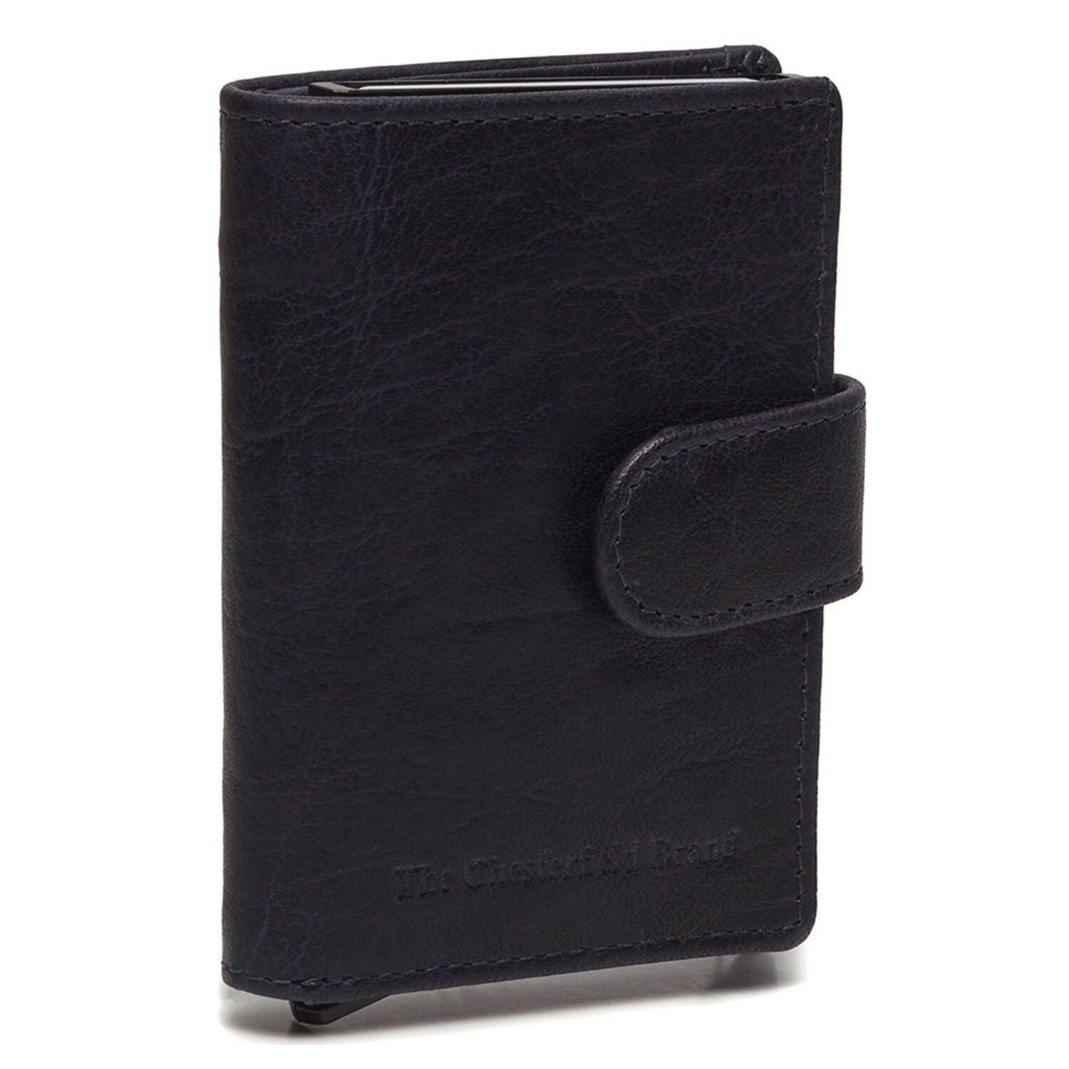 Kompaktes, elegantes Design, höchste Qualität und Sicherheit vereinen sich in diesem Kreditkartenetui von The Chesterfield Brand. In dem stabilen Aluminium Case finden bis zu 6 Karten Platz, die auf Knopfdruck in geordneter Reihenfolge herausgleiten. Zudem ist das Etui mit RFID-Schutz gegen Datendiebstahl ausgestattet. Die edle Hülle aus hochwertigem Leder sorgt für individuelle Eleganz und verfügt über weitere Fächer für Karten sowie ein Geldscheinfach und ein Reißverschlussfach auf der Rückseite für Münzen, Einkaufswagenchip oder andere kleine Wertsachen.