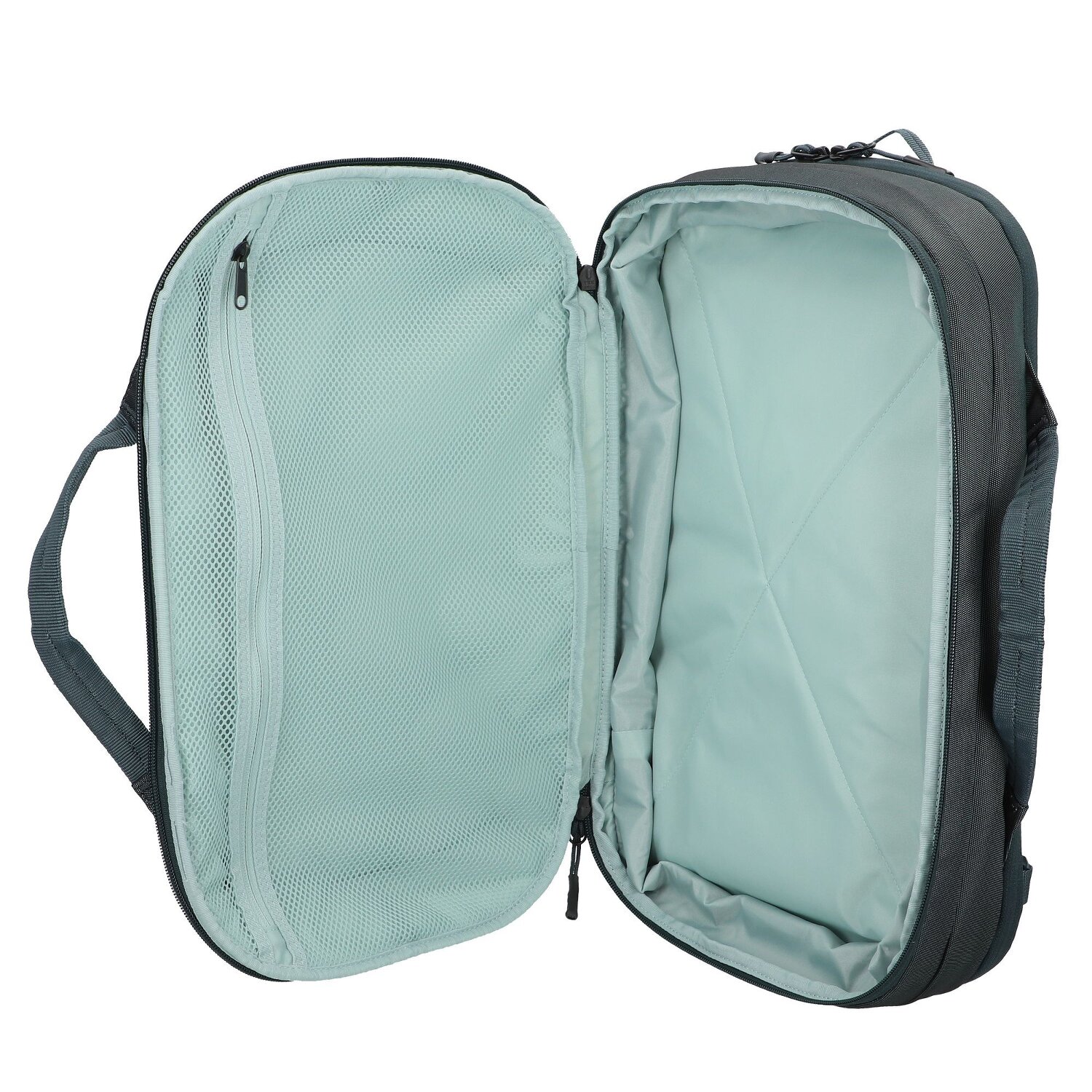 - Ausstattung: Tasche(n) innen, Tasche(n) außen, Rückenpolsterung, Reißverschlussfach, Dehnfalte, auf Trolley steckbar