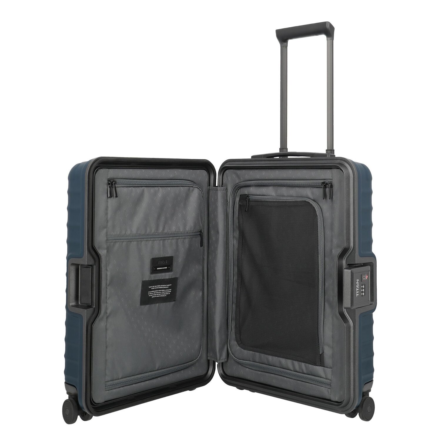 Im Herzen des Abenteuers ruft ein Maler der Mobilität - der Kabinentrolley aus der Overseas Serie von Titan. Gebaut für jene, die der Horizont nicht hält, besticht dieser durch 4 freigiebige Rollen und einen arretierbaren Griff, die Flugterminal-Navigation zu einer kunstvollen Choreographie verwandeln. Das Wäschefach, der Kreuzpackgurt und Innentaschen bieten Ordnung inmitten des Chaotischen. Der robuste Baumeister gemachte Reisebegleiter, geformt aus widerstandsfähigem Polycarbonat, trotzt mit verstärkten Ecken und einem TSA-Schloss allem Tohuwabohu und Unvorhergesehenen. Zögern Sie nicht, durchleben Sie mit diesem Trolley die poetische Romantik der Reise.