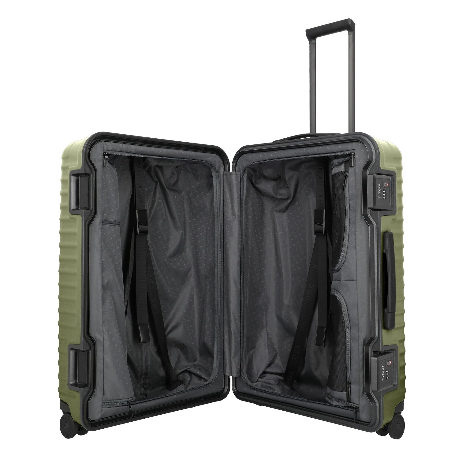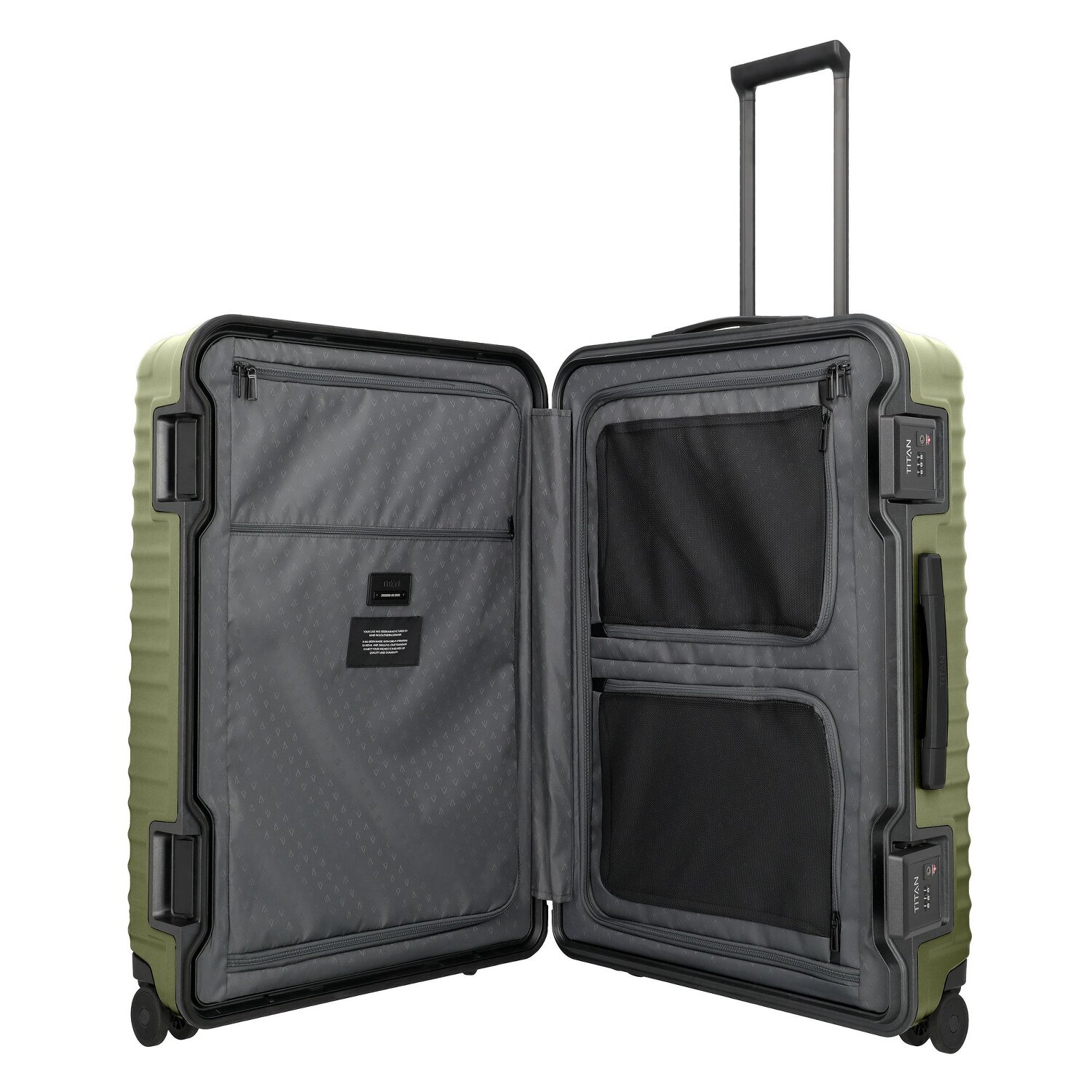 Unverkennbar Titan: der robuste Hartschalenkoffer aus der grandiosen Serie 'Overseas' mit vier geschmeidigen Rollen, ein Reisegepäck der Extraklasse. Hergestellt aus kräftigem Polycarbonat, besticht er durch seine unvergleichliche Widerstandsfähigkeit und leichte Manövrierbarkeit. Mit einer Fülle von smarten Merkmalen – von einem arretierbaren Griff, über ein Wäschefach, Kreuzpackgurt, interne Taschen, gesicherte Ecken bis hin zu einem Reißverschlussfach – wird Organisieren zum Kinderspiel. Auch sicherheitstechnisch punktet der Koffer mit einem inkludierten TSA-Schloss. Schlüpfen Sie beim Transport in die Komfort-Zone dank eines handlichen Tragegriffs. Ihr nächstes Reiseabenteuer ruft, lassen Sie es mit dem Titan Hartschalenkoffer stilvoll beginnen.