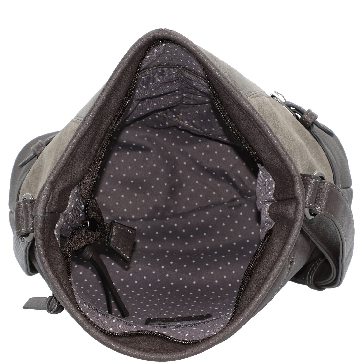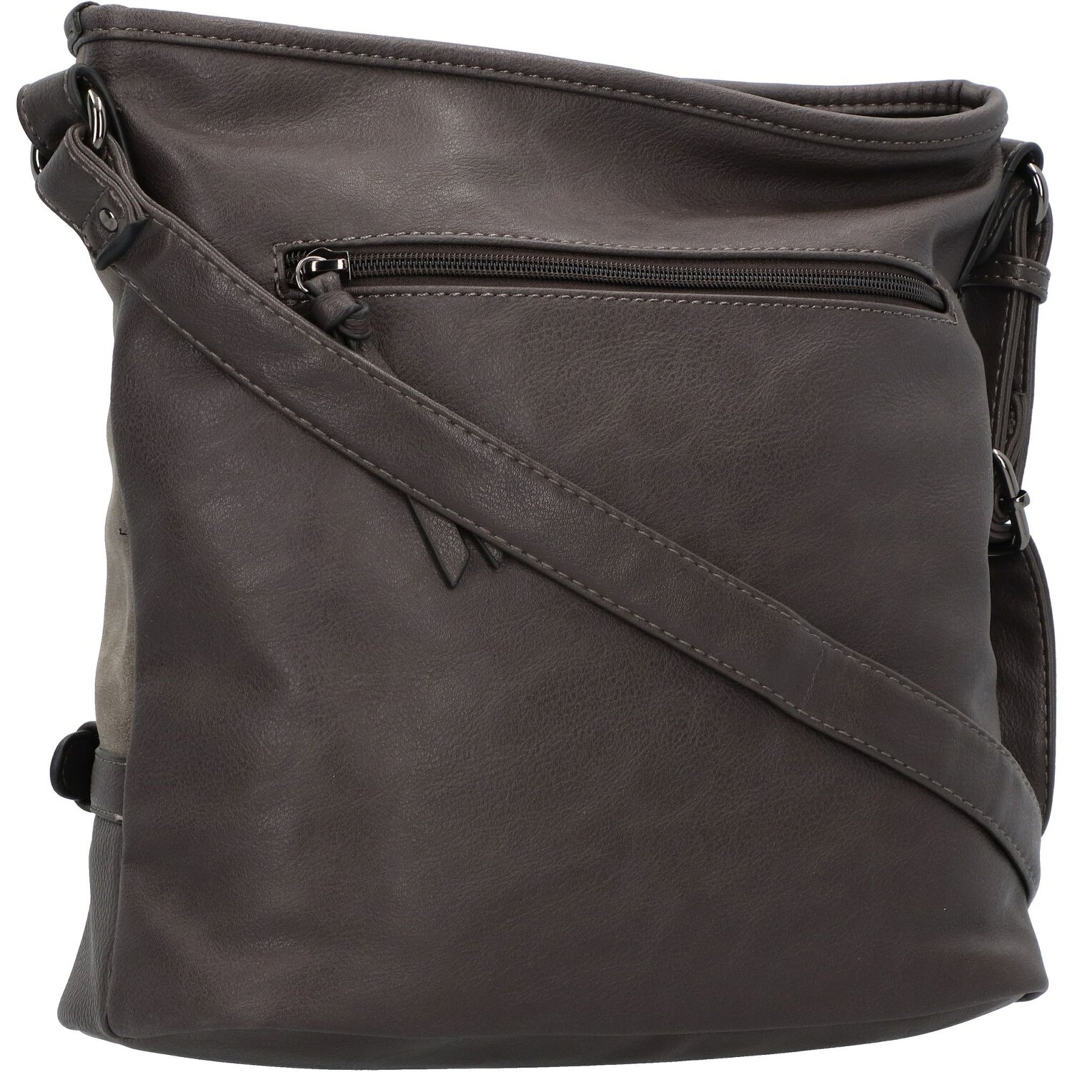 Stylische Umhängetasche von Tom Tailor aus hochwertigem Kunstleder mit schönen Deko-Schnallen vorne. Die Tasche verfügt über ein geräumiges Hauptfach mit Reißverschlussöffnung, ein Reißverschlussfach, ein Handy- und ein Steckfach im Innern, sowie ein weiteres Reißverschlussfach aus der Rückseite. Der Umhängeriemen lässt sich stufenlos verstellen. Modische Begleiter für den Alltag.