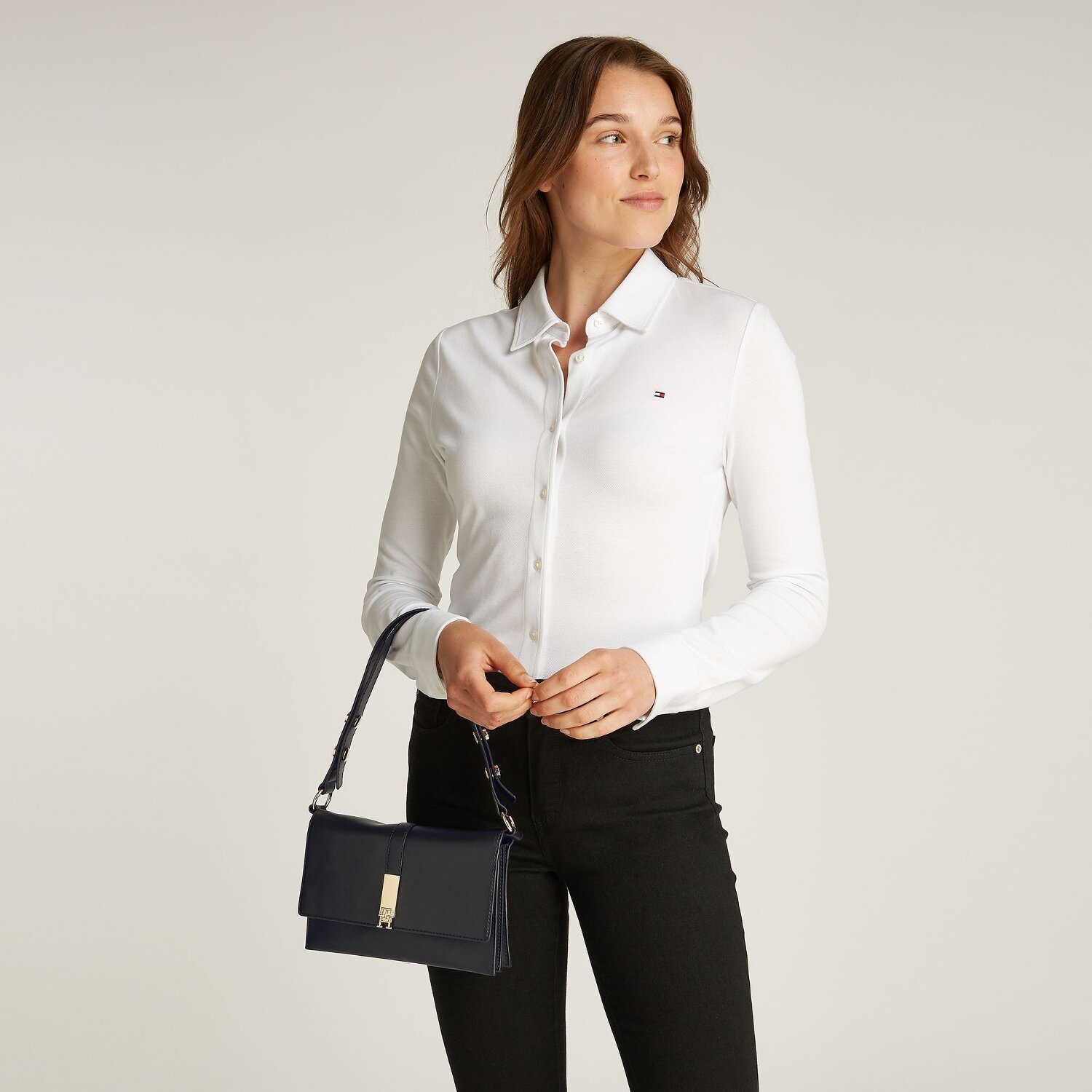 Definieren Sie Ihren Stil mit der Tommy Hilfiger Heritage Schultertasche für Damen. Erforschen Sie die raffinierten Details, die diese Tasche besonders ausmachen. Sie bietet nicht nur Stauraum mit zusätzlichen Innentaschen und einem Reißverschlussfach, sondern auch praktischen Komfort dank des einfach zu handhabenden Steckverschlusses.