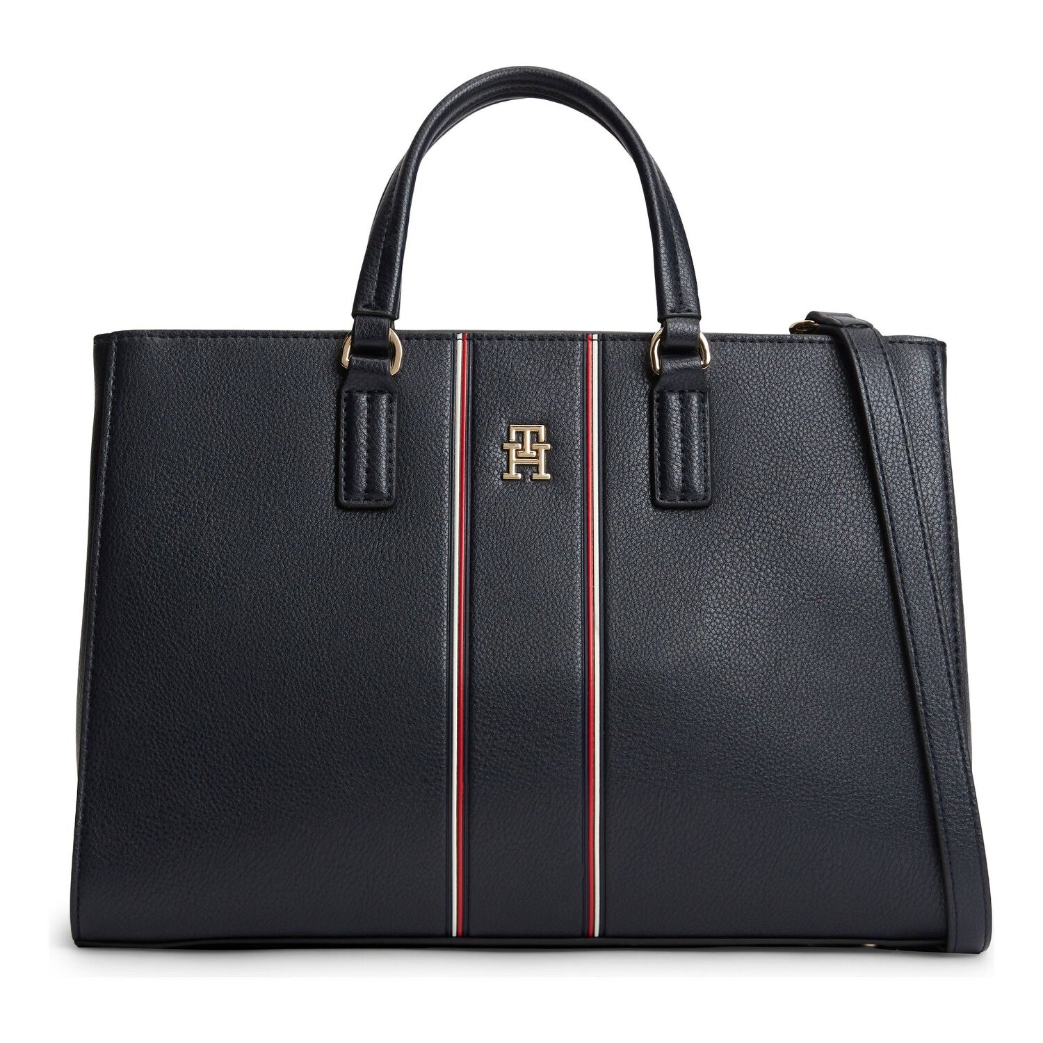 Die Tommy Hilfiger Shoppertasche aus der 'TH Daily' Serie ist eine komfortable Begleiterin im Alltag. Dank ihrer praktischen Raumtrennung im Inneren und der verstellbaren Trageoption dank abnehmbaren und verstellbaren Umhängeriemen ist sie sowohl für das Büro als auch die Freizeit bestens geeignet. Hergestellt aus robustem Polyurethan, bietet sie nicht nur eine visuelle Attraktivität, sondern auch eine zuverlässige Stabilität. Mit einem leicht zugänglichen Reißverschluss geschützt, sichert die Tasche alle Essentials sicher. Eleganz und Alltagstauglichkeit vereint, ist sie der ideale Kauf für modebewusste Damen, die Wert auf Qualität und Funktionalität legen.