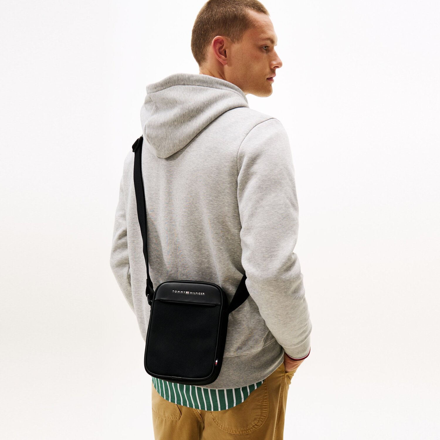 Mit einem Hauch von markanter Männlichkeitpräsentiert sich die TH Foundation Mini Bag von Tommy Hilfiger, die mehr als nur Eleganz und Funktionalität verkörpert. Perfekt für den urbanen Herren, zeichnet diese Tasche sich durch Taschen an der Außenseite aus, die zusätzlichen Stauraum für essenzielle Kleinigkeiten bieten. Hergestellt aus robustem, glattem und einfach zu reinigendem Polyurethan sorgt sie für Beständigkeit auf Ihren Reisen. Ein unkomplizierter Reißverschluss erleichtert den Zugang, während die verstellbare Länge des Umhängeriemen und die lange Länge des Hauptgurtes einen komfortablen Tragestil ermöglichen. Verschaffen Sie sich die Freiheit, Ihre Hände zu bewegen und gleichzeitig Ihre Habseligkeiten sicher bei sich zu tragen. Schlagen Sie den Weg mit Stil ein und erleben Sie ein höheres Niveau an Komfort und Bequemlichkeit mit der TH Foundation Mini Bag von Tommy Hilfiger.