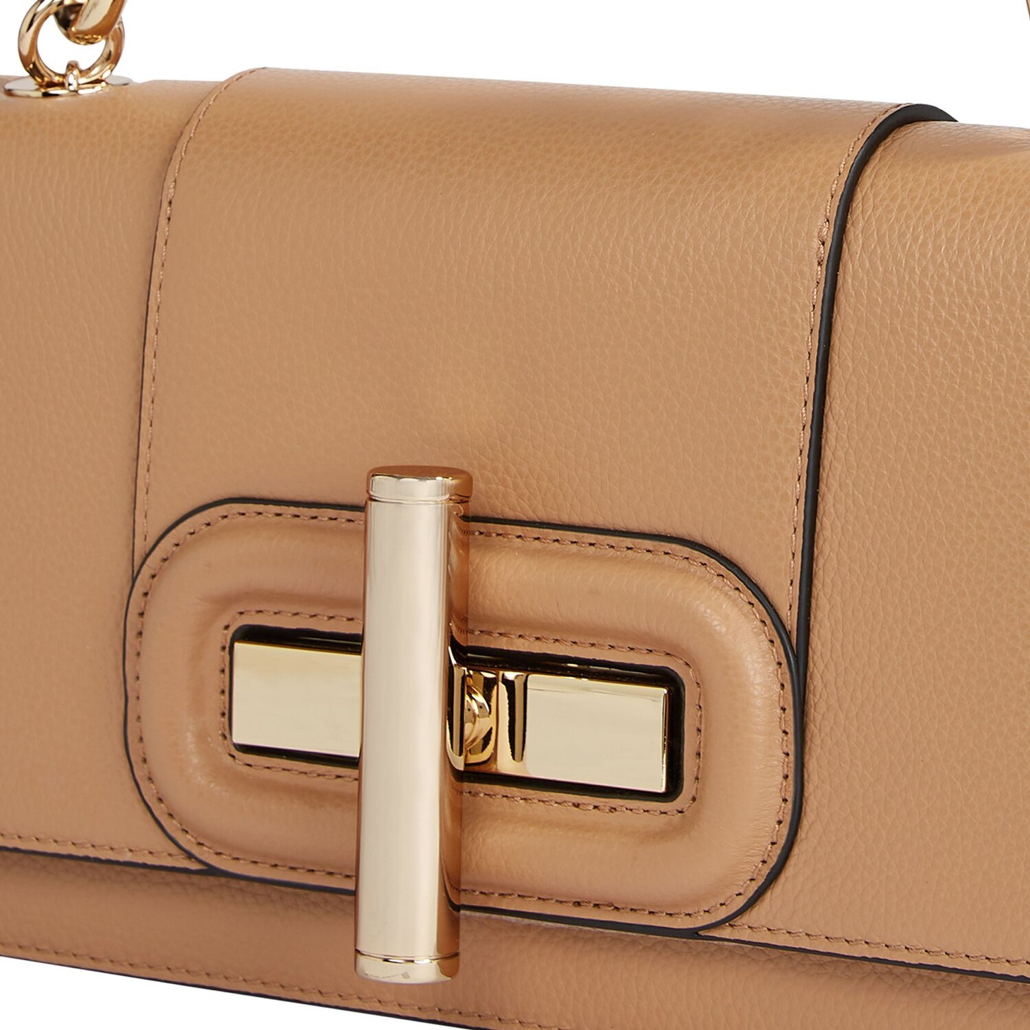 Highlight dieser Tasche ist das Material selbst - Leder. Fühlen Sie die Geschmeidigkeit und Stärke jedes Mal, wenn Sie diese Tasche berühren. Der Drehverschluss ist nicht nur ein modisches Detail, sondern auch unglaublich praktisch und leicht zu bedienen. Das Sahnehäubchen? Ein mittellanger Umhängeriemen, der verschiedene Tragemöglichkeiten bietet, um sich bequem und stilvoll durch den Tag zu bewegen.