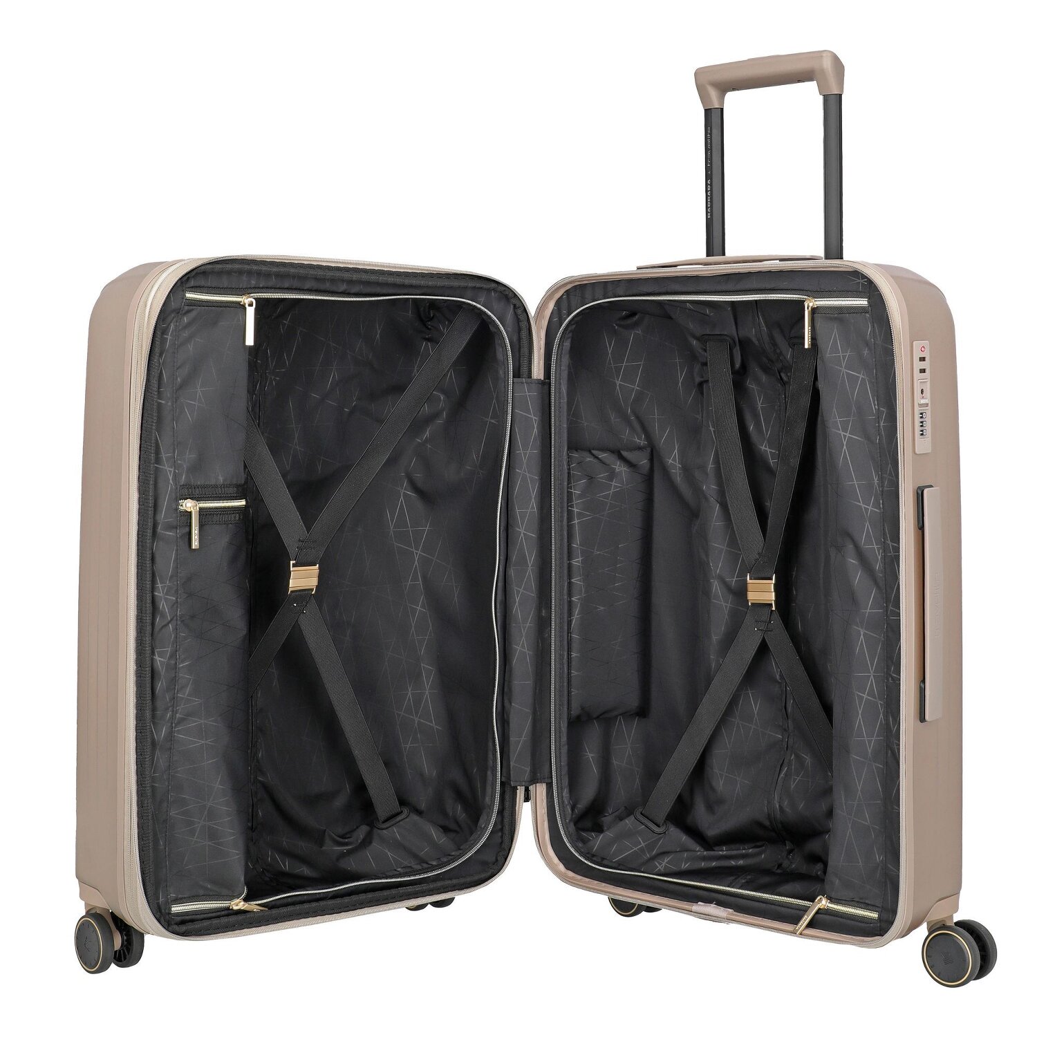 Das Novelty Koffer-Set aus der BARBARA & travelite Kollektion kombiniert Stil mit Funktionalität. Vom kompakten Handgepäck bis zum großzügigen Trolley ist man hiermit für jede Reise ausgestattet. Edle Metallkomponenten, ein robustes Polycarbonat-Gehäuse und durchdachte Features wie ein herausnehmbares Schmucketui sorgen für maximalen Reisekomfort.