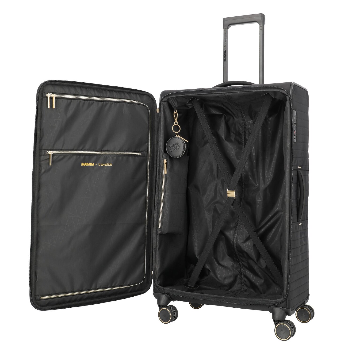 Mit dem Travelite Barbara Stoff-Koffer geht es stilvoll auf Reisen. Gefertigt aus robustem Nylon, bieten vier Rollen und arretierbarer Griff ultimativen Reisekomfort. Neben außen angebrachten Taschen und Wäschefach, sorgt eine Dehnfalte für Zusatzvolumen. Der raffinierte Kreuzpackgurt hält Ihre Kleidung am Platz. Das Reißverschlussfach erleichtert die Organisation, während der Tragegriff einen einfachen Transport von Gepäckträgern oder Fließbändern ermöglicht. Der Travelite Barbara Koffer - eine Verbindung aus Komfort, Widerstandsfähigkeit und modernem Design. Bereiten Sie sich auf unvergessliche Reisen mit diesem herausragenden Koffer vor.