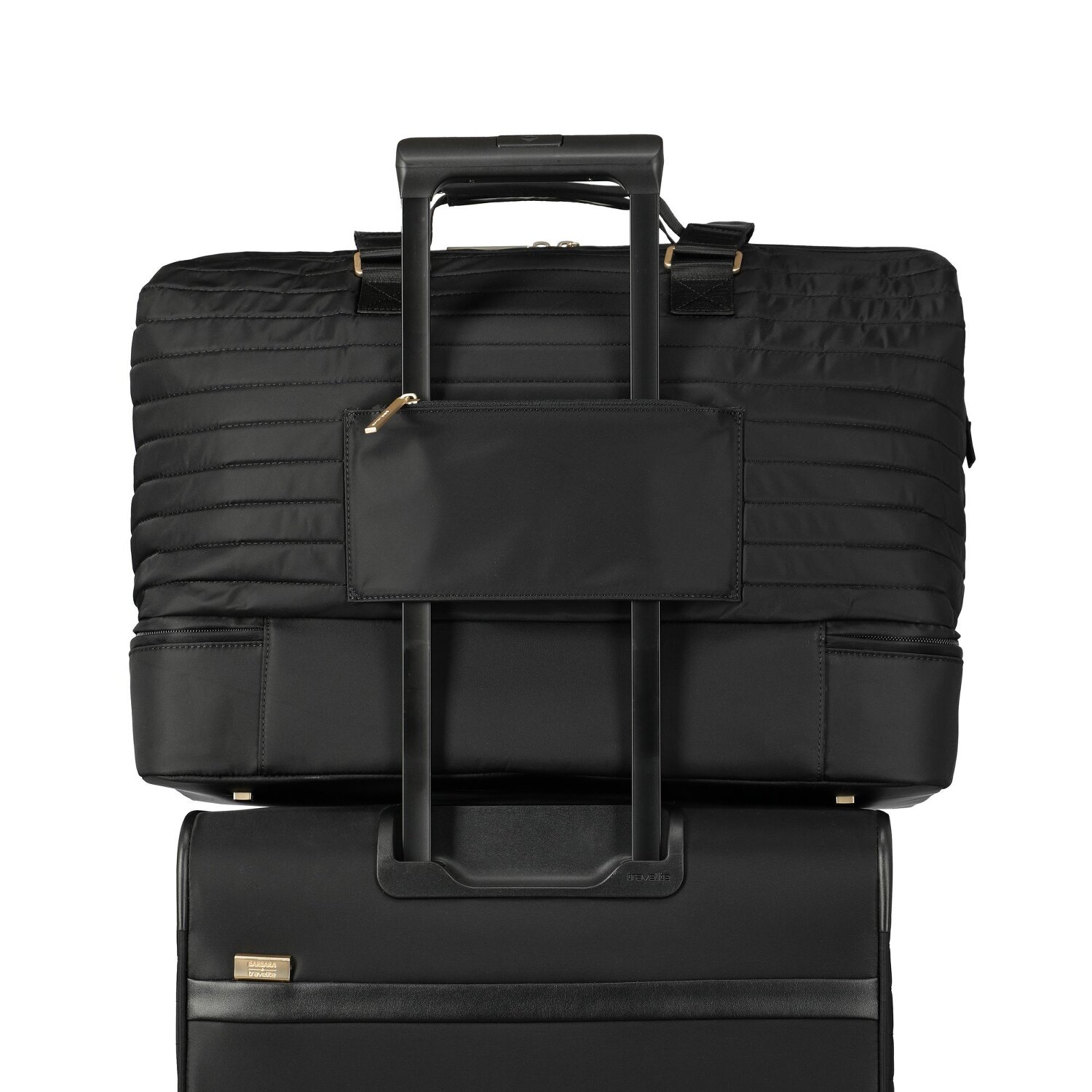 - Ausstattung: Tasche(n) innen, Tasche(n) außen, Handyfach, auf Trolley steckbar