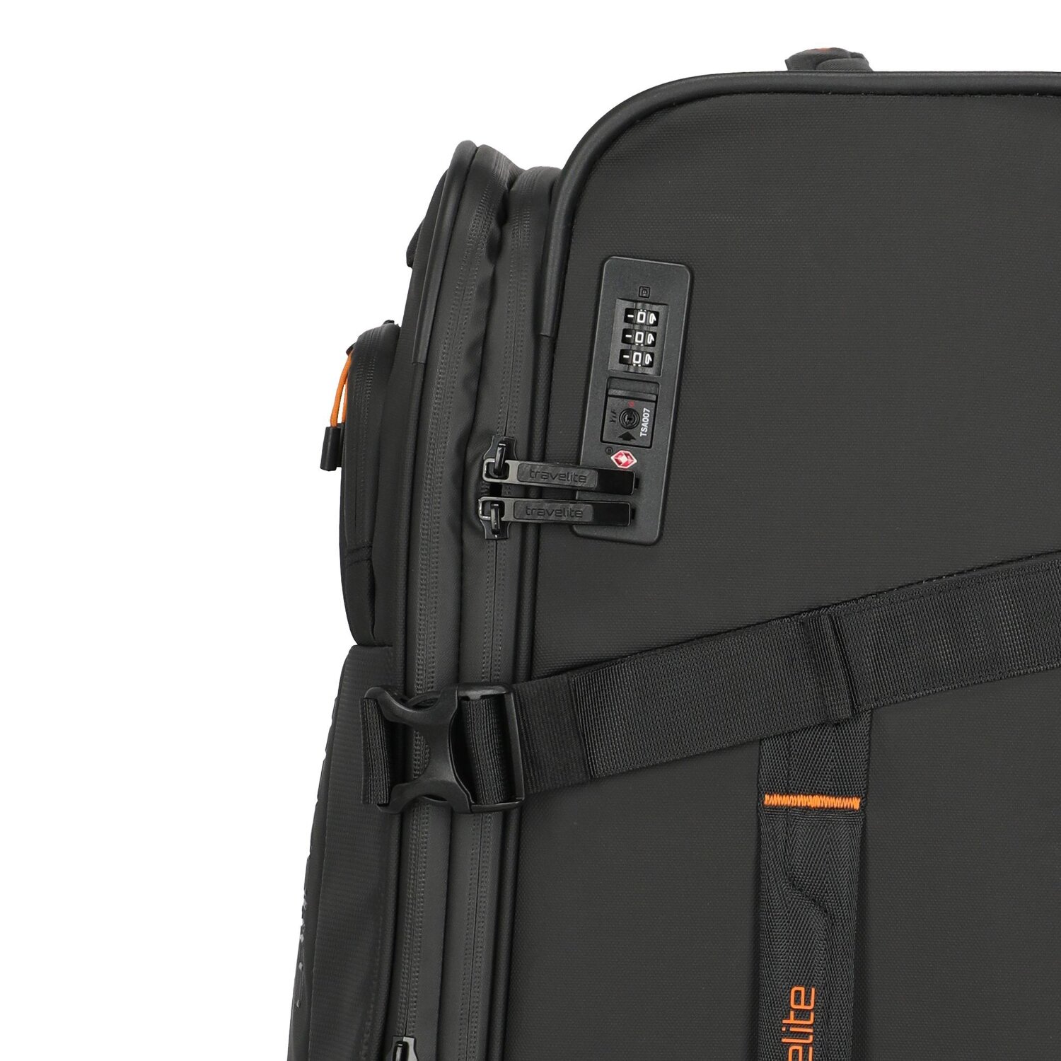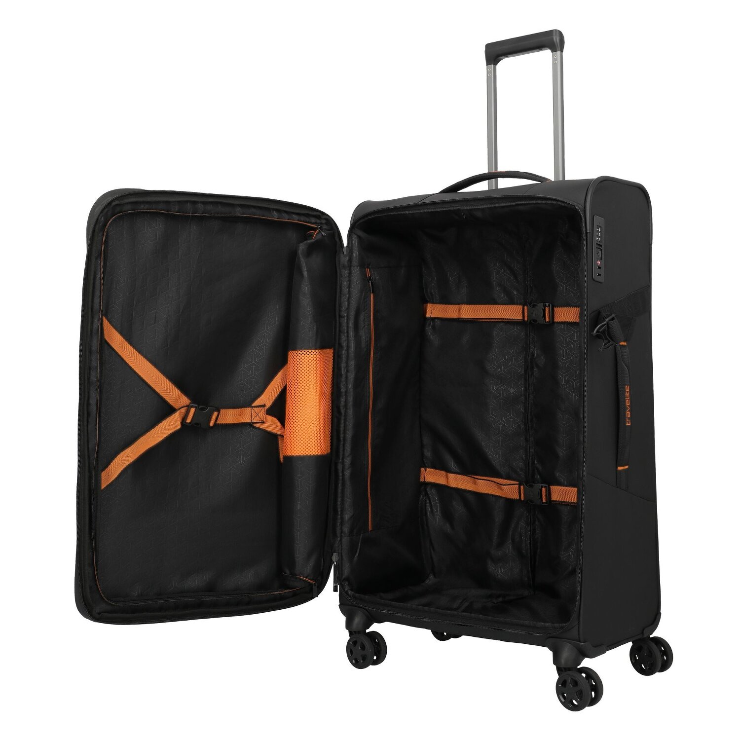 - Ausstattung: Wäschefach, Tasche(n) außen, Reißverschlussfach, Kreuzpackgurt, Dehnfalte, arretierbarer Griff