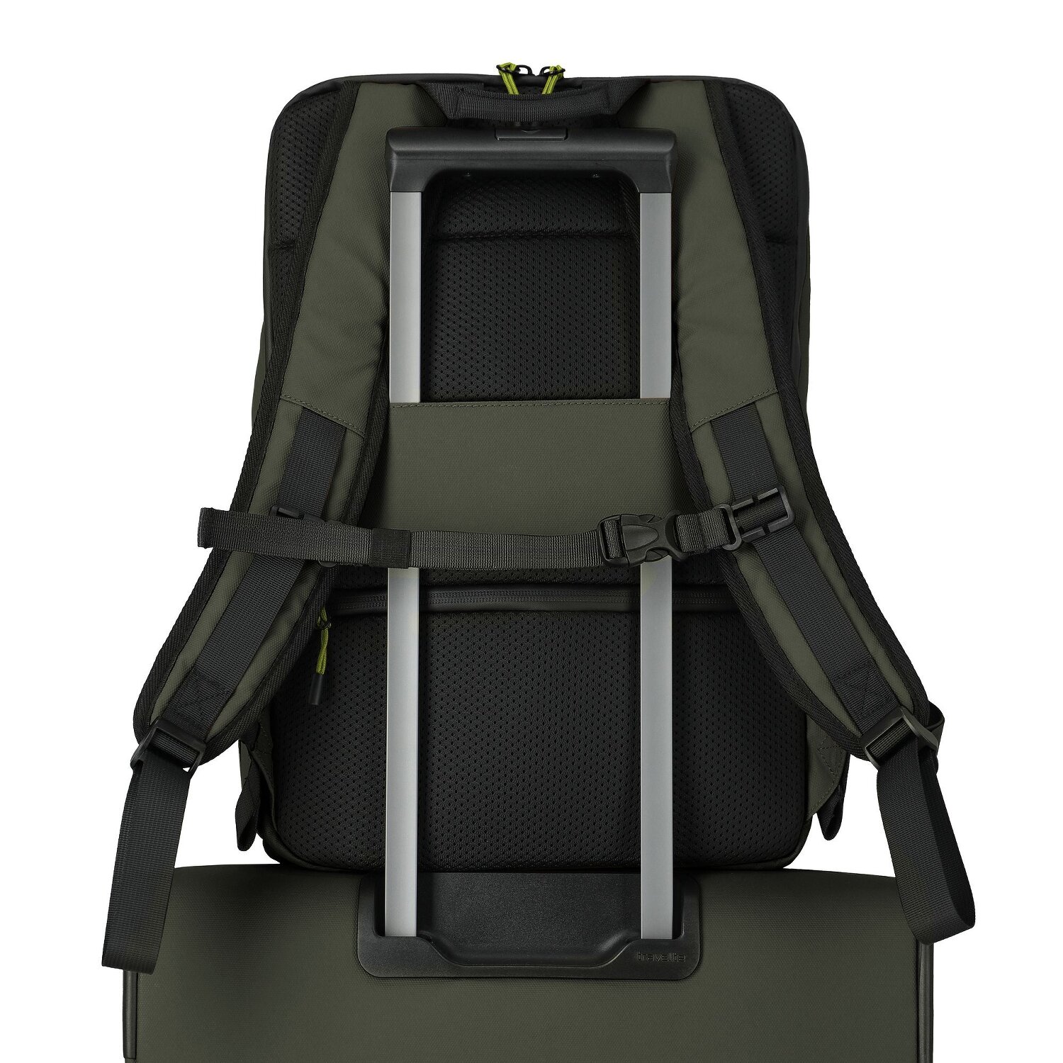 - Ausstattung: Trinkflaschenfach, Tasche(n) innen, Tasche(n) außen, Rückenpolsterung, Netzfach, Handyfach, Brustgurt, auf Trolley steckbar