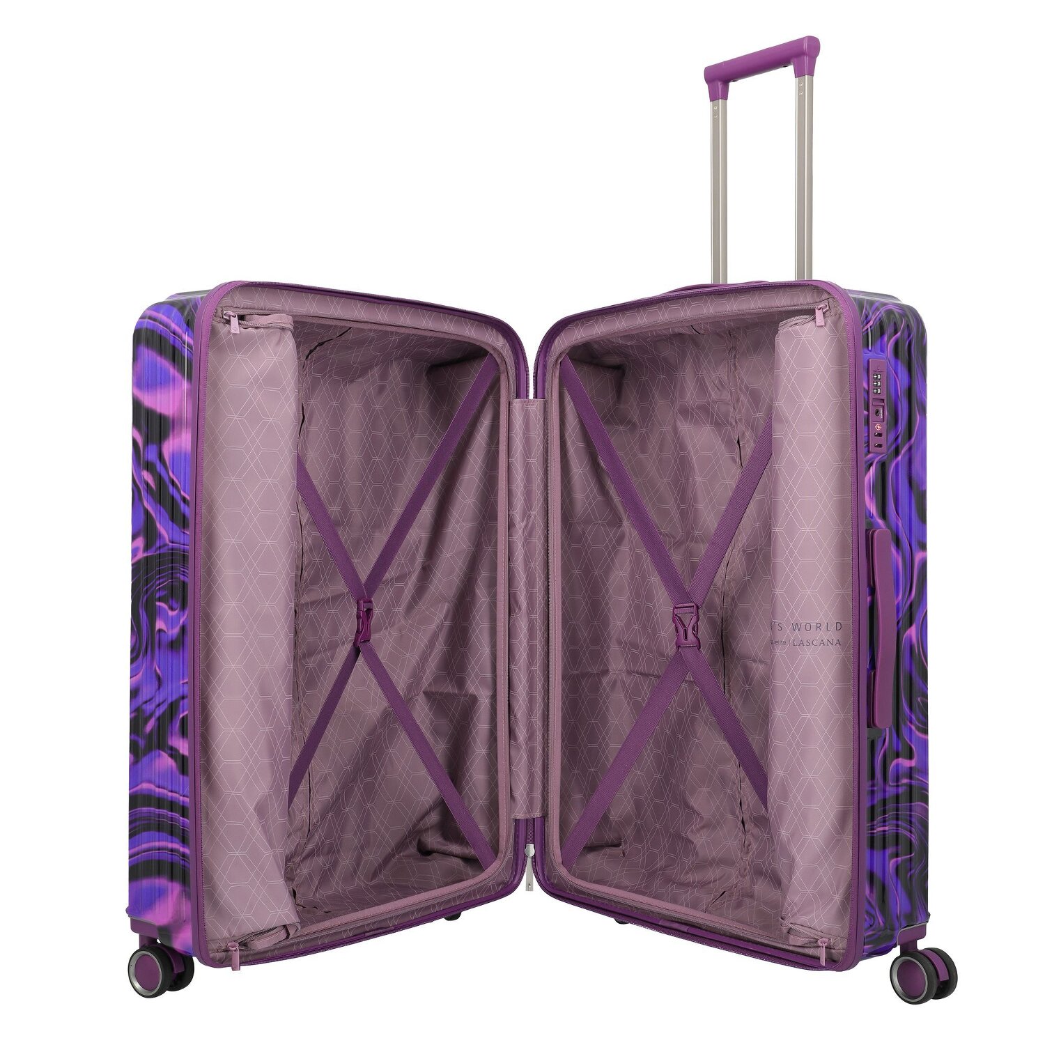 Mit Stil und Sicherheit in die Welt: Der Hartschalenkoffer mit 4 Rollen der Serie Lascana von Travelite vereint beide Aspekte überzeugend. Hergestellt aus ABS, steht dieser Koffer für robuste Stabilität und geringes Gewicht. Der arretierbare Griff und der praktische Tragegriff sorgen für angenehmes Handling, während im Inneren das Wäschefach und ein Kreuzpackgurt für Ordnung auf Reisen sorgen. Das TSA-Schloss gewährleistet, dass der Reisende und seine Habseligkeiten geschützt sind. Spüre das Flüstern der vier Rollen auf verschiedenen Böden - mit diesem Koffer im Schlepptau sind Sie für das nächste Abenteuer bereit!