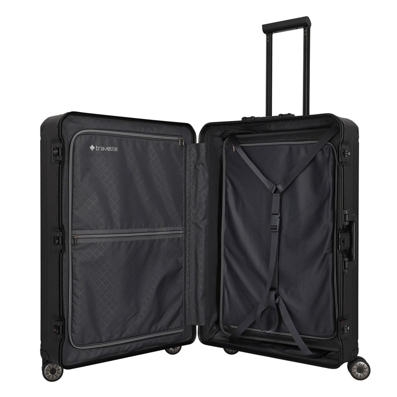 - Ausstattung: Trenn-/Packplatte, Reißverschlussfach, Netzfach, Kreuzpackgurt, arretierbarer Griff