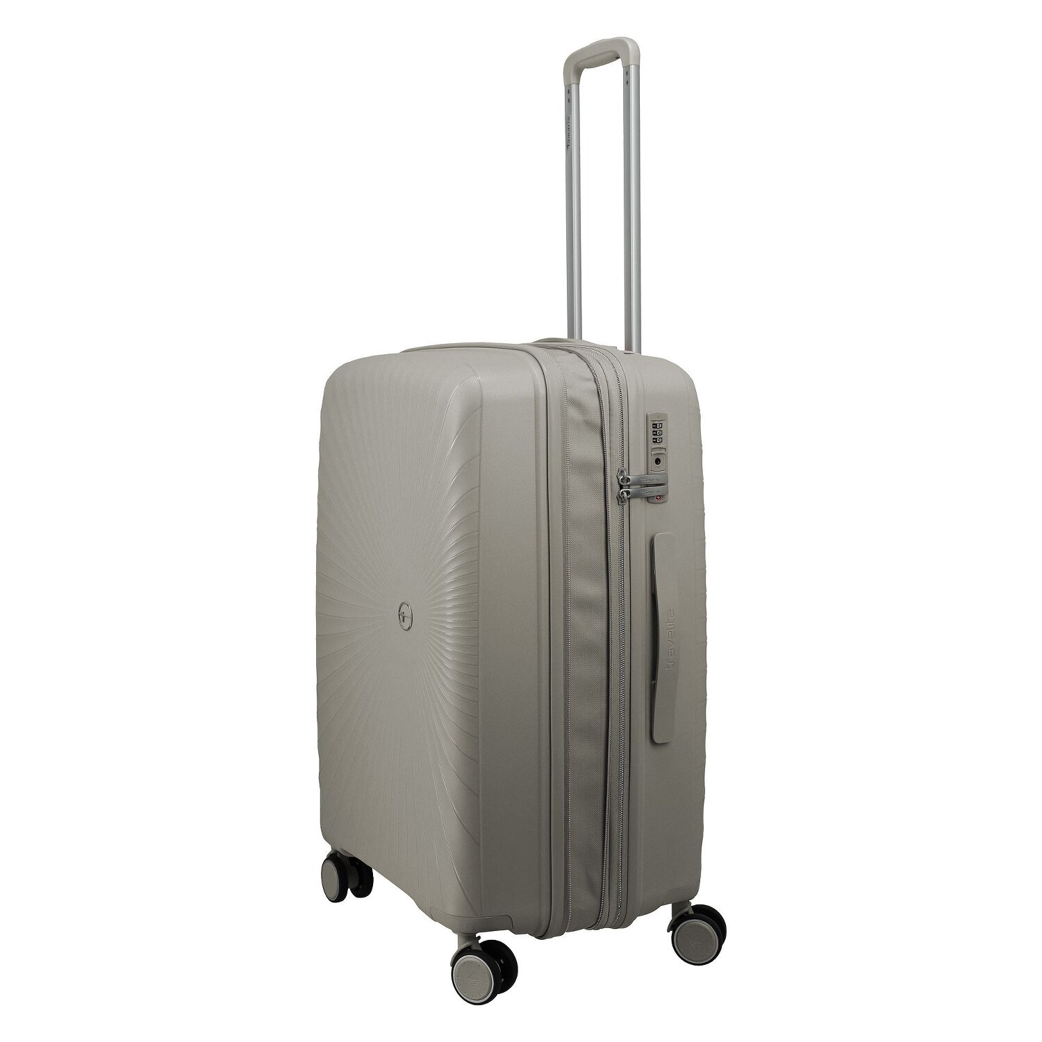 - Ausstattung: Wäschefach, Reißverschlussfach, Kreuzpackgurt, Dehnfalte, arretierbarer Griff