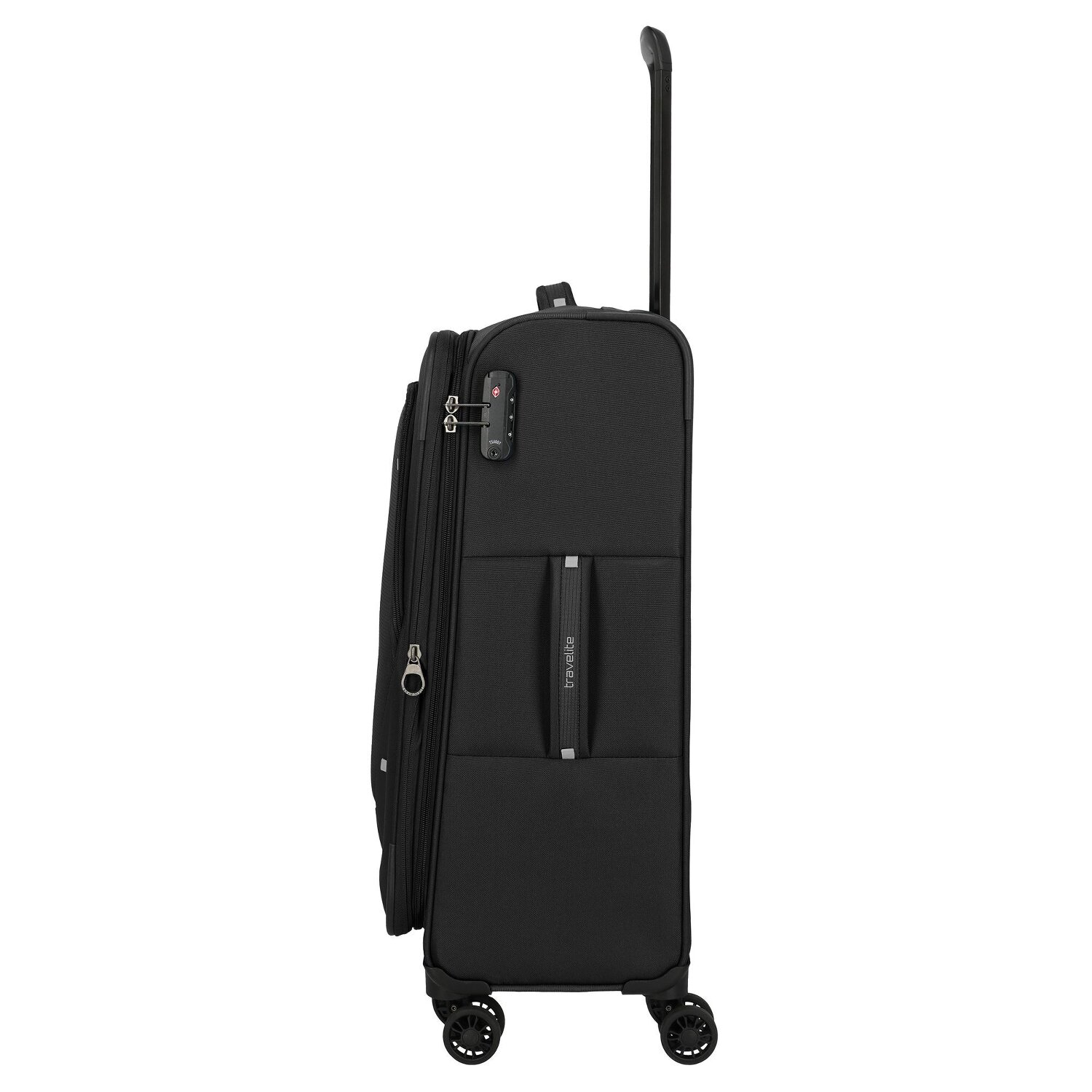 - Ausstattung: Tasche(n) außen, Reißverschlussfach, Netzfach, Dehnfalte, arretierbarer Griff