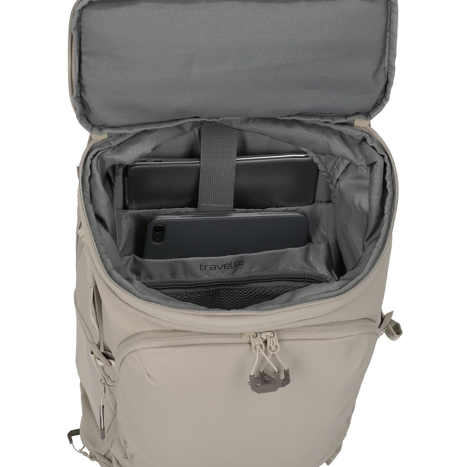 - Ausstattung: Trinkflaschenfach, Tasche(n) innen, Tasche(n) außen, Rückenpolsterung, Kompressionsriemen, auf Trolley steckbar