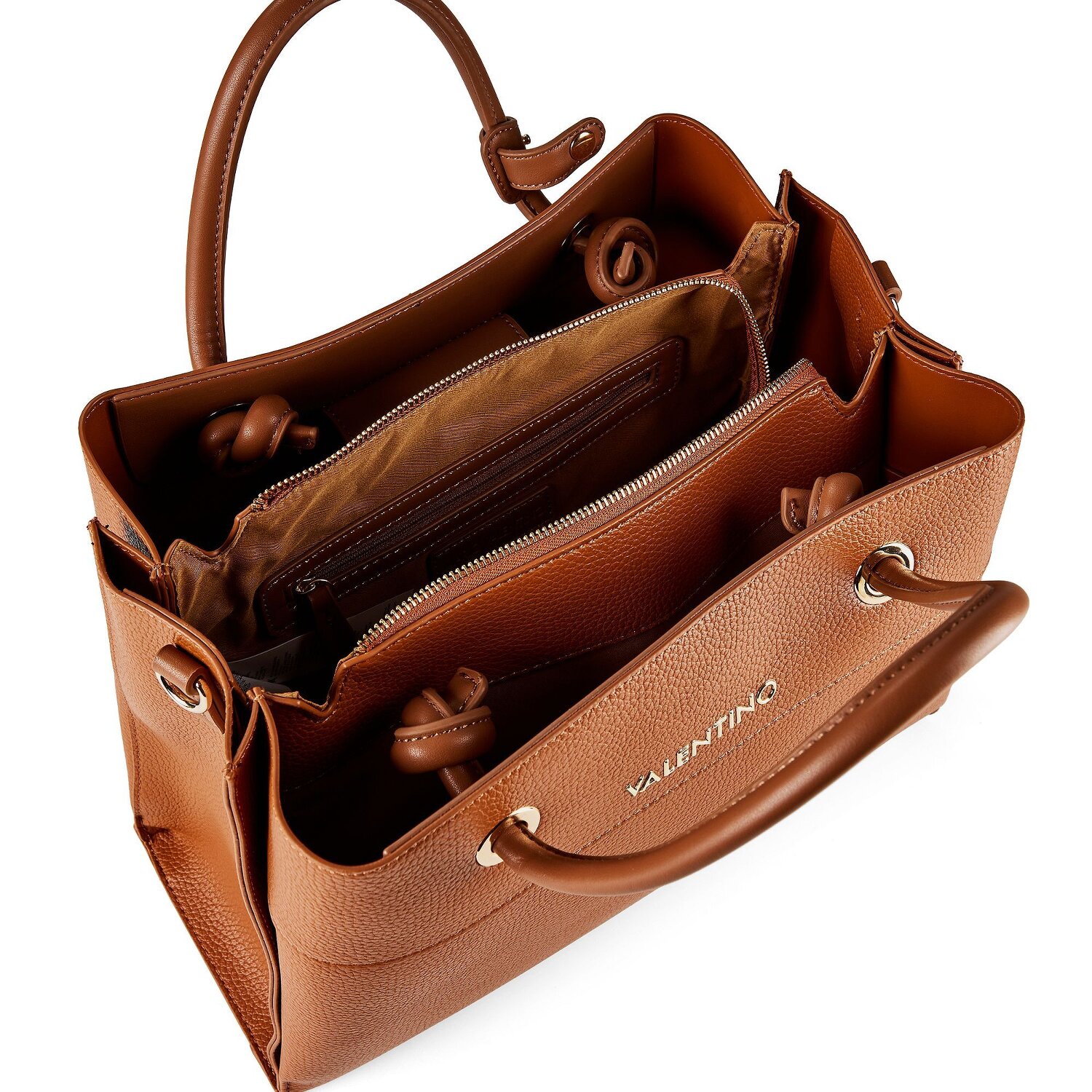 Geräumige Handtasche aus weichem Kunstleder in elegantem Design zeichnet sich durch ihre gute Organisation und aufregende Akzenten aus. Der Logoschriftzug aus Metall auf dem Umhängeriemen rundet das Design stillvoll ab.