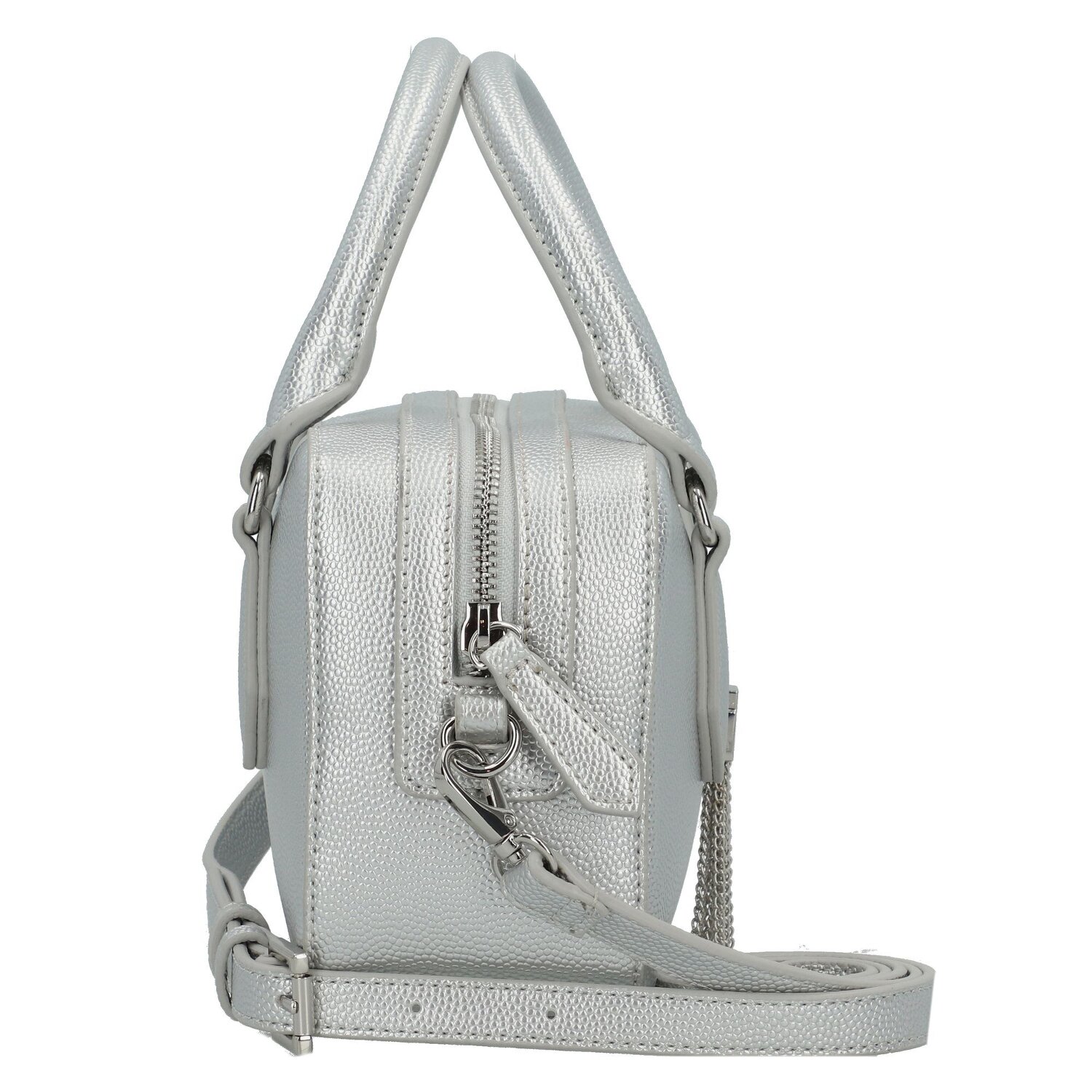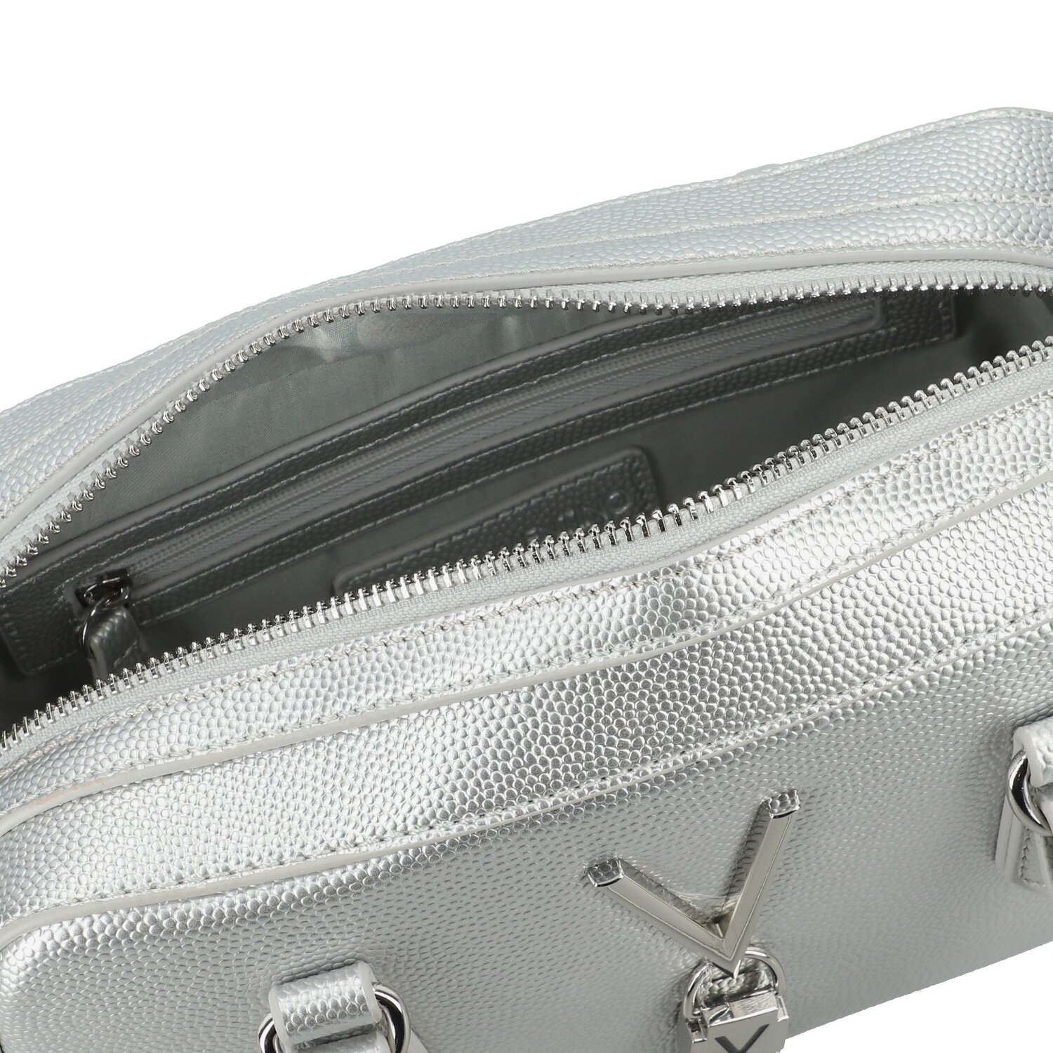 Im edlen Design präsentiert sich die Valentino Divina Handtasche als wahres Schmuckstück. Als Klasse für sich zieht diese Tasche alle Blicke auf sich, ohne sich dabei in den Vordergrund zu drängen. Das raffinierte Polyurethan-Material wurde sorgfältig ausgewählt und bietet eine ansprechende Textur, während die ausdrucksstarke Struktur ihre einzigartige Ästhetik unterstreicht. Der praktische Reißverschluss schützt Ihre Wertsachen sicher und lässt sich dennoch leicht handhaben. Der abnehmbare, verstellbare Riemen ermöglicht eine individuelle Längeneinstellung und bietet somit die Möglichkeit, die Tasche nach Belieben zu tragen. Innen überzeugt die Tasche mit funktionellen Taschen und einem Reißverschlussfach, das zusätzlichen Stauraum bietet. Verleihen Sie Ihrem Stil das gewisse Extra mit der Divina Handtasche von Valentino.