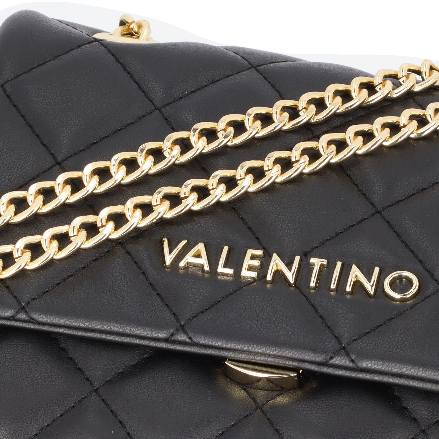 Die Ocarina Serie von Valentino zeichnet sich durch ein elegantes Design aus. Das geräumige Hauptfach bietet genug Stauraum für ihr Wertsachen und die Zusatz Fächer sorgen für noch mehr Stauraum und bessere Übersicht. die zwei zusammenhängenden Metallketten mit Schulterpolstern aus Kunstleder, können zu einem Umhängeriemen gemacht werden in dem man eine der beiden Ketten im Deckel der Tasche verschwinden lässt. Der ideale Begleiter für viele Gelegenheiten.