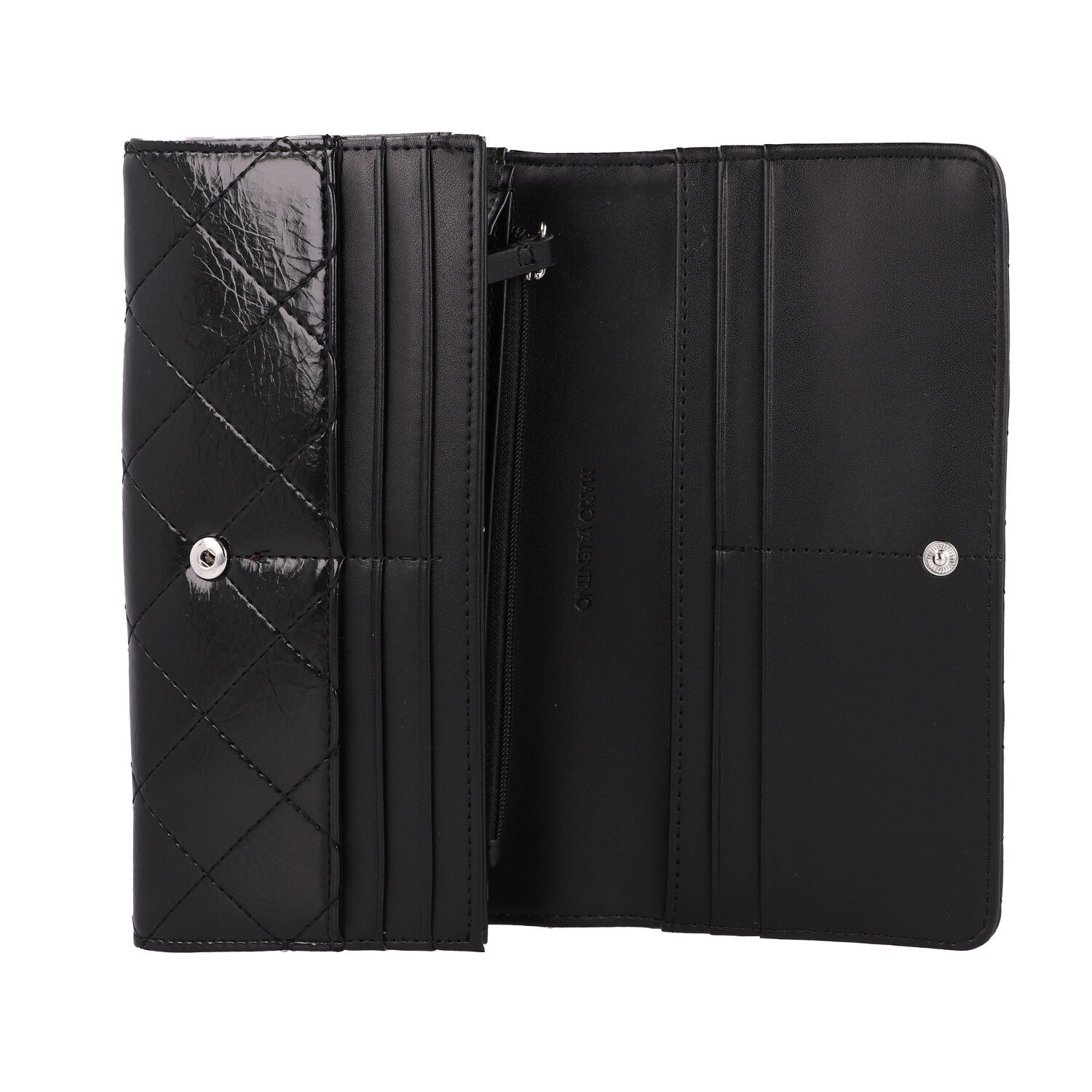 Erleben Sie die Eleganz und den Komfort der Valentino Wakanda-Damengeldbörse im Querformat. Mit ihrem aufregend strukturierten Polyurethan-Material ist diese Geldbörse ein Blickfang für jeden Anlass. Doch nicht nur das äußere Ton-in-Ton-Muster überzeugt - im Inneren steckt eine Vielzahl von Funktionen. Für alle Ihre Kreditkarten stehen 19 Fächer bereit, sämtliche Scheine finden in zwei Scheinfächern Platz und Kleingeld ist im Münzfach gut aufgehoben. Zwei weitere Steckfächer bieten zusätzlichen Stauraum, geschlossen wird sie sicher per Druckknopf. Verschönern Sie ihre Tasche mit diesem Accessoire, das Stil und Organisation perfekt vereint. Ihre Entscheidung für die Valentino Wakanda-Damengeldbörse wird sich als gewinnbringend herausstellen.