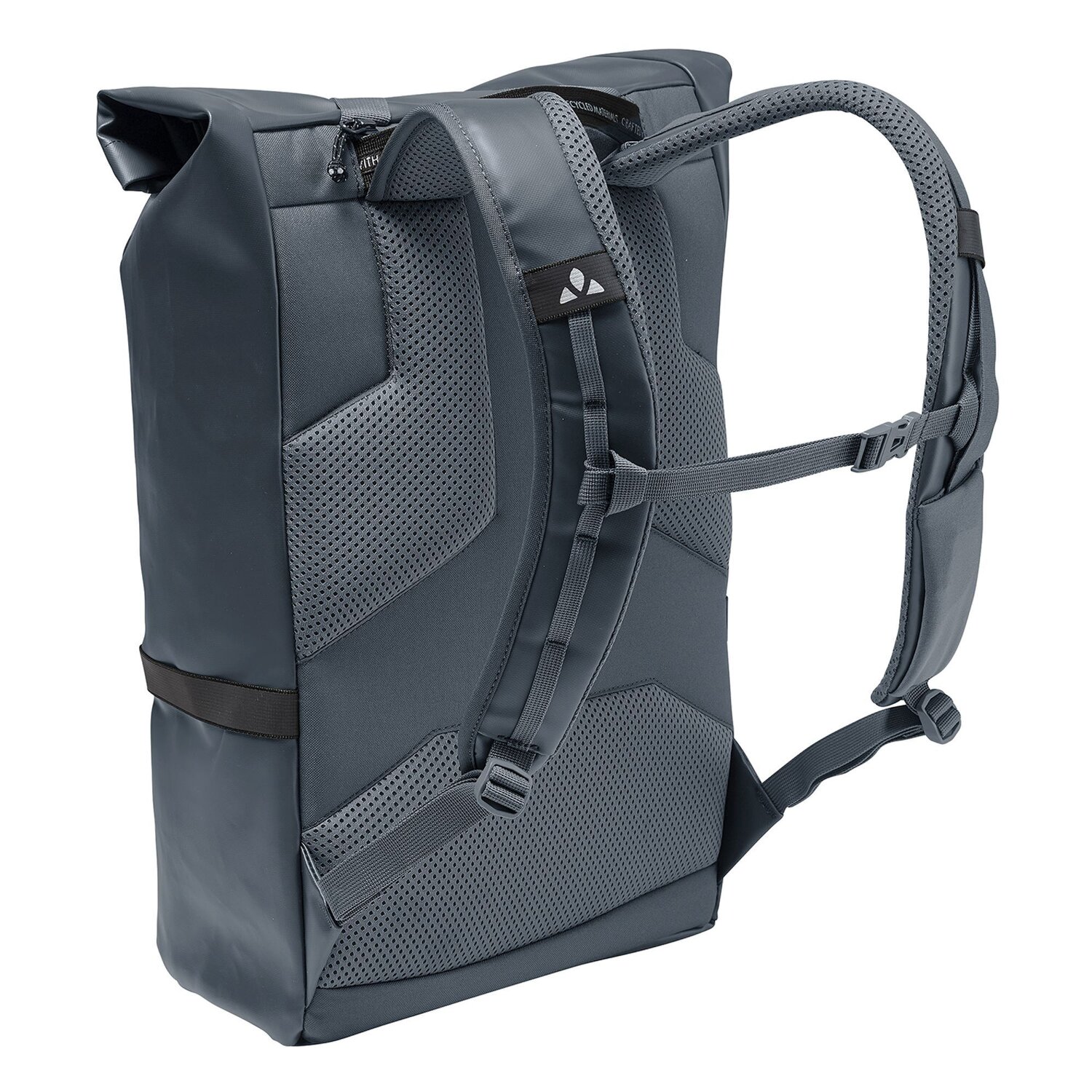 Funktionaler, stylischer Rucksack von Vaude, hergestellt aus robustem, umweltfreundlichem Material. Die clevere Innenaufteilung bietet genug Platz für Laptop, A4-Unterlagen, Geldbeutel, Trinkflasche und weitere Wertsachen. Für einen besseren Tragekomfort ist der Rucksack am Rücken gepolstert. Auf der Rückseite ist eine Lasche angebracht, mit der die Tasche auf einen Trolley gesteckt werden kann. Ein treuer Begleiter für den Büroalltag.