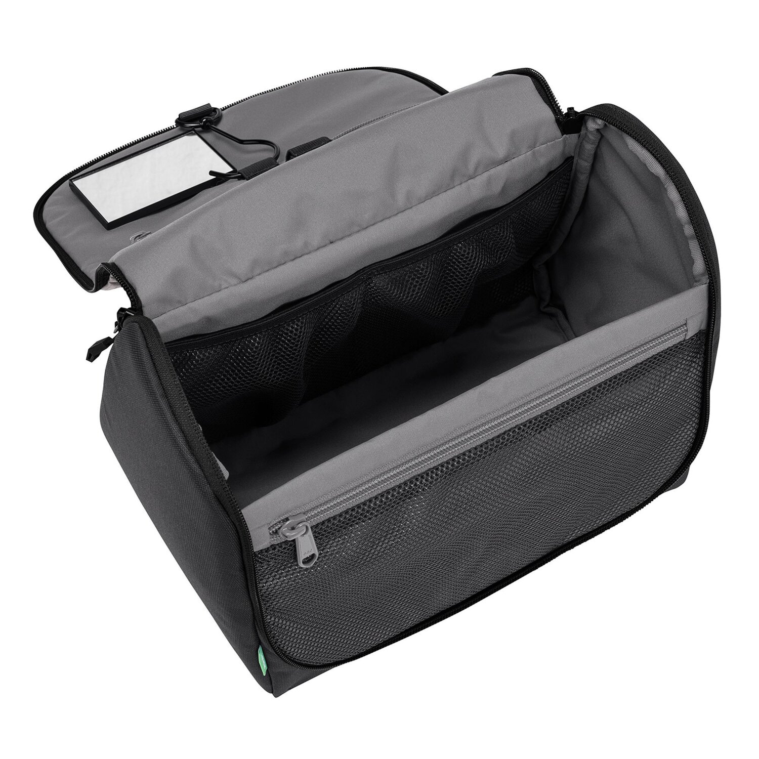 Praktischer Kulturbeutel von Vaude mit Haken zum Aufhängen und aus Recyclingmaterial hergestellt. Im Hauptfach sorgen mehrere Innen- sowie Netzfächer, Zahnbürstenhalter und ein integrierter Spiegel für Ordnung. Die ideale Begleitung auf Reisen in der sie all Ihre Bad-Accessoires verstauen können.