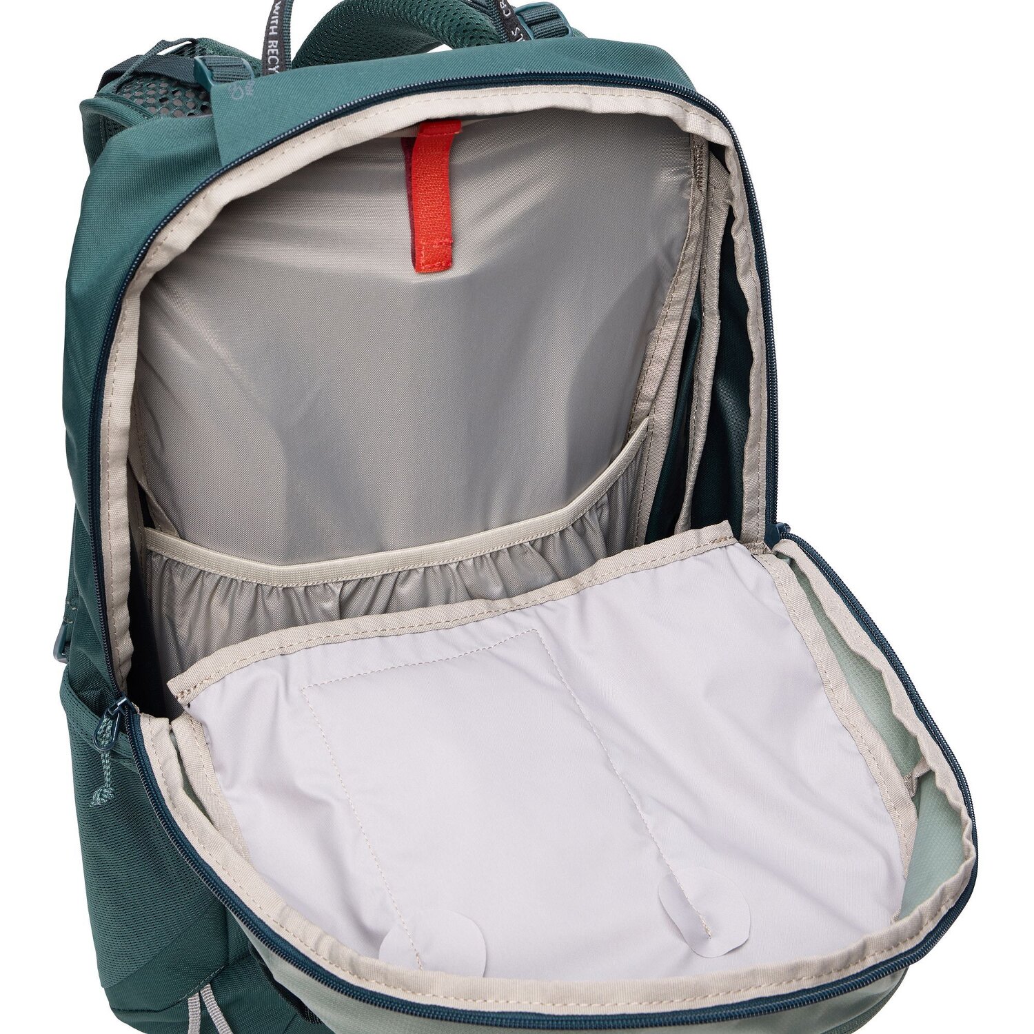 - Ausstattung: Trinkflaschenfach, Tasche(n) innen, Tasche(n) außen, Rückenpolsterung, Reißverschlussfach, Kompressionsriemen, Kompatibel mit Trinksystem, ergonomisch geformtes Rückensystem, Brustgurt, Beckengurt, Ausrüstungsschlaufe