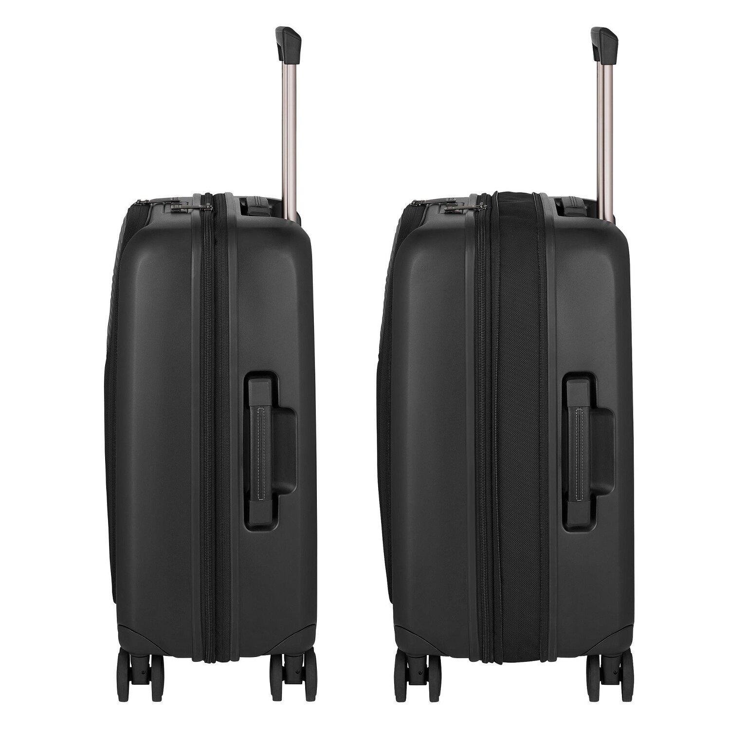 - Ausstattung: Wäschefach, Tasche(n) außen, Reißverschlussfach, Kreuzpackgurt, Dehnfalte, arretierbarer Griff