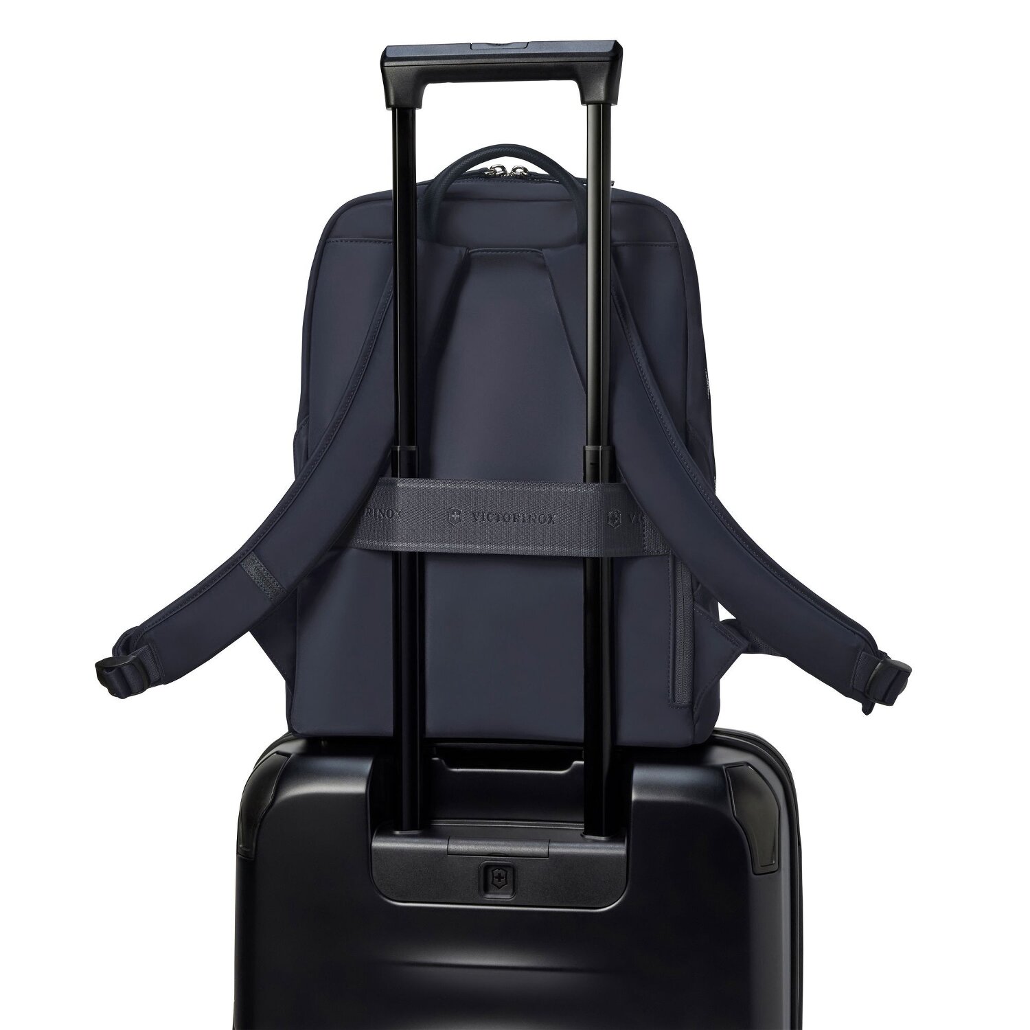 Elegantes Design und innovative sowie wasser- und abriebfeste Materialien zeichnen diesen geräumigen Rucksack von Victorinox aus. Er besitzt ein extra gepolsterte Schulterriemen und eine Trolley-Austeckfunktion. Der Rucksack verfügt über ein großes Hauptfach und ist unter anderem mit Fächern für Handy, Stifte, Flasche sowie Laptop für Geräte mit einer Bildschirmdiagonale von ca. 35,5 cm (14 Zoll) ausgestattet. Auch ein herausnehmbares, wasserdichtes Etui mit Handgelenkschlaufe ist vorhanden. Der Rucksack eignet sich sowie fürs Büro, als auch für Freizeit und Reise.