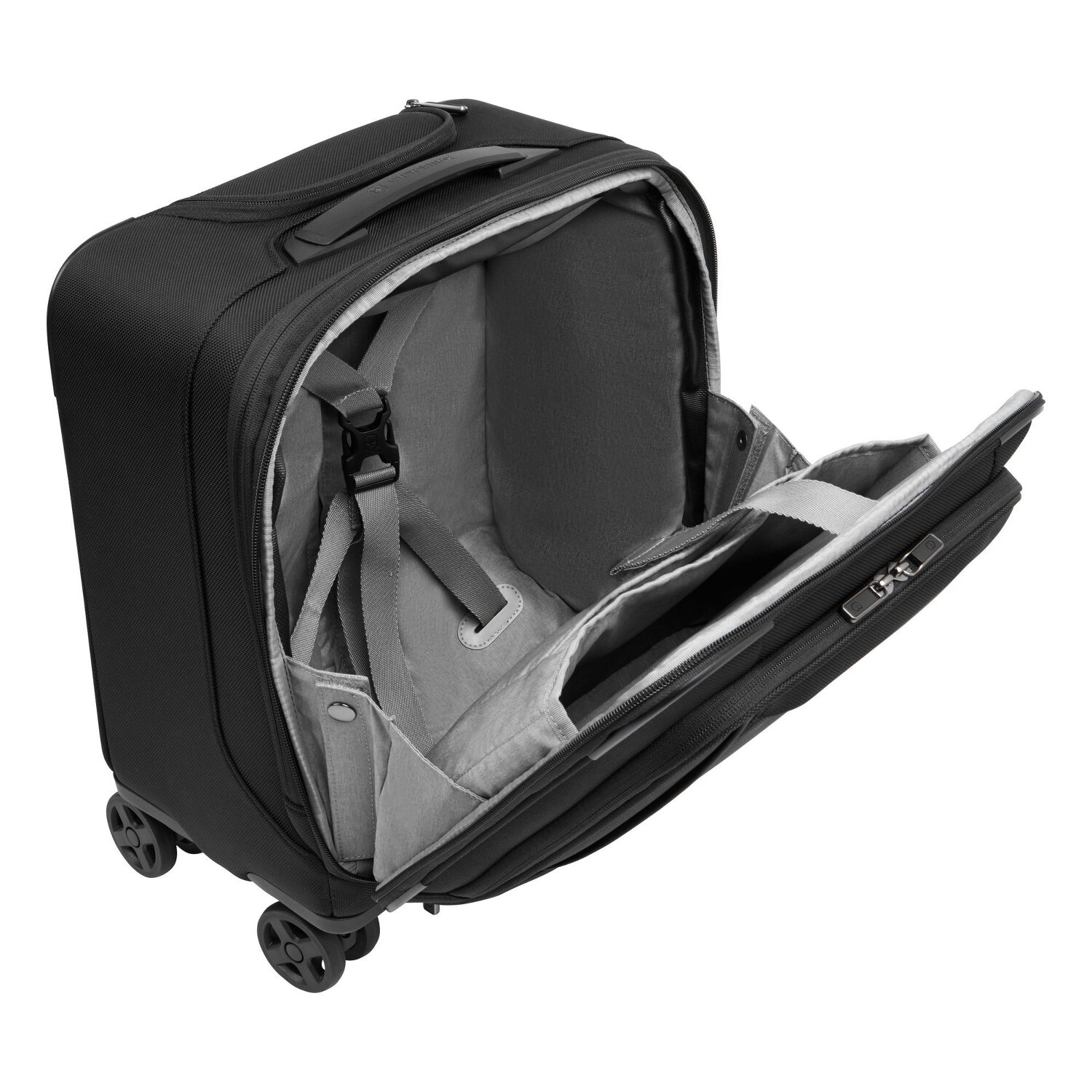 Kompakter und zugleich komfortabler Businesstrolley der Werks Professional 6.0 Serie von Victorinox bietet viel Platz mit seinem geräumigen Hauptfach. Der Trolley besitzt durchdachte Innenaufteilung, einen Kreuzpackgurt für knitterfreies Fixieren Ihrer Kleidung, zahlreiche Nebenfächer und ein gepolstertes Laptop- und Tabletfach. Ideal für Geschäftsreisen mit Übernachtung.