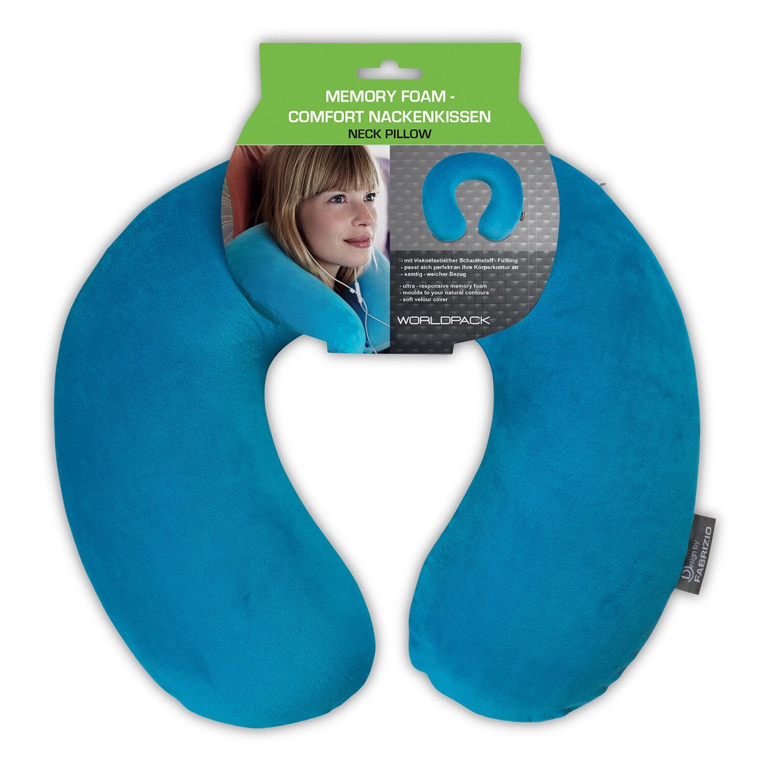 Traumhaft bequemes Nackenkissen von Worldpack. Das Kissen aus Memory Schaum passt sich perfekt an und stützt zuverlässig den Kopf. So lässt sich komfortabel reisen.