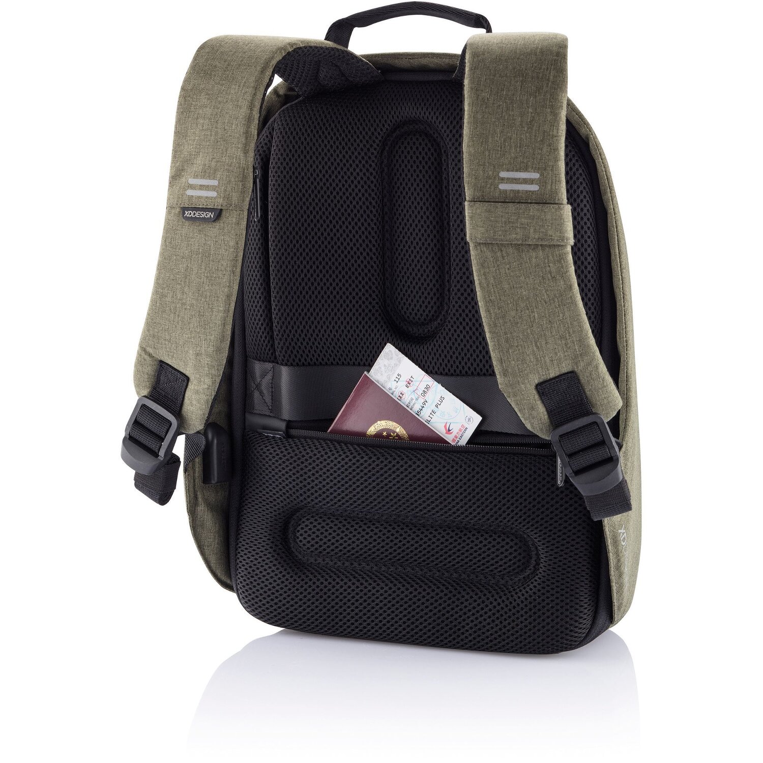 Anti-Diebstahl Rucksack von XD Design überzeugt mit zahlreichen Sicherheitsfeatures. Er wurde aus umweltfreundlichem, wasserabweisendem, reiß- und schnittfestem Material gefertigt und verfügt über abschließbare Reißverschlüsse und stoßfeste, gepolsterte Fächer. Mit ergonomischem Tragesystem bietet er eine optimale Belüftung und Lastverteilung. Weitere tolle Merkmale sind: weit zu öffnendes Hauptfach mit drei verstellbaren Positionen, USB-Port für einfaches Aufladen unterwegs, rückseitige Trolley-Aufsteckfunktion, Sonnenbrillenhalter, ein gepolstertes Laptopfach für Laptops mit Bildschirmdiagonale bis ca. 39,5 cm (15,6 Zoll), ein gepolstertes Tabletfach, RFID-Schutz gegen Datendiebstahl und mehr.