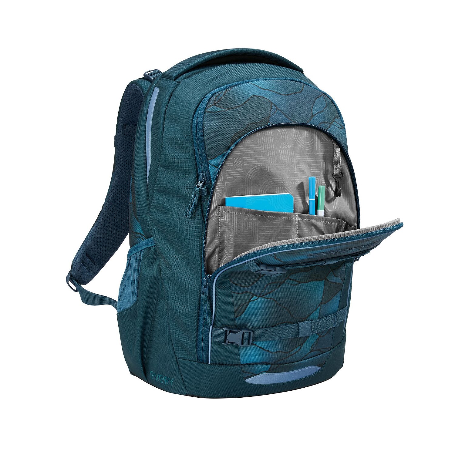 Rauf auf die Abenteuerspielplätze der Wissbegierigen mit dem coocazoo Schulrucksack aus der Serie Every! Dieser an Kinder angepasste Schulrucksack bietet eine Vielzahl an coolen Features, von einem ergonomisch geformten Rückensystem für bequemes Tragen, bis hin zu herrlich geräumigen Fächern, die genügend Platz für A4 Unterlagen bieten. Mit Hilfe des pfiffigen Reißverschluss-Systems ist alles super schnell erreichbar. Ein Laptopfach schützt den Technikgefährten und ein Tragegriff, ein Schlüsselhalter sowie leuchtende Reflektoren ergänzen das smarte Design. Setzt eure Segel und startet durch mit diesem ultimativen Schulbegleiter!