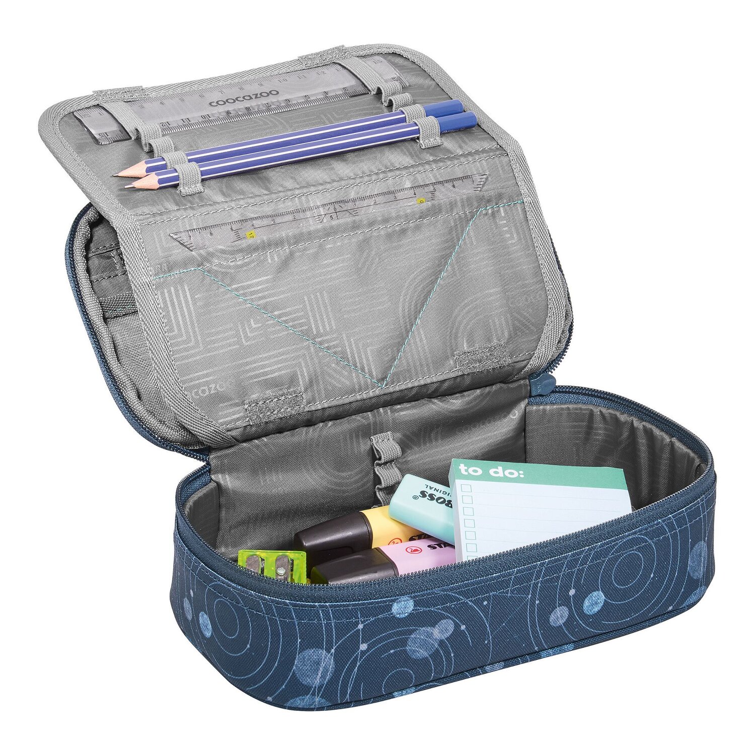 Damit startet der Unterricht mit Spaß: das coocazoo Schlampermäppchen wird euer ständiger Begleiter sein! Ein besonderes Highlight sind die vielfältigen Stiftelaschen, wo jedes Schreibutensil seinen Platz findet. Ausgestattet mit Reißverschlussfach, Netzfach und einer nützlichen Ausrüstungsschlaufe, ist das Mäppchen ein echter Allrounder. Der robuste Reißverschluss öffnet und schließt ganz leicht - perfekt um schnell an deine Stifte zu kommen. Das strapazierfähige Polyester macht es langlebig und widerstandsfähig. Nicht nur die perfekte Ordnungshelfer, sondern auch ein cooles Accessoire für jeden kleinen Schulmeister! Im Lieferumfang enthalten ist nur Das Lineal und ein Geodreieck. Bilder können vom Lieferumfang abweichen.