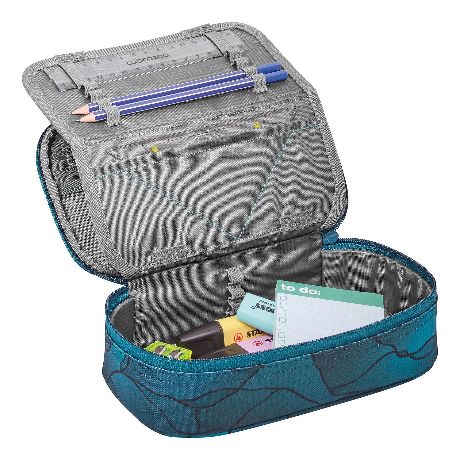 Damit startet der Unterricht mit Spaß: das coocazoo Schlampermäppchen wird euer ständiger Begleiter sein! Ein besonderes Highlight sind die vielfältigen Stiftelaschen, wo jedes Schreibutensil seinen Platz findet. Ausgestattet mit Reißverschlussfach, Netzfach und einer nützlichen Ausrüstungsschlaufe, ist das Mäppchen ein echter Allrounder. Der robuste Reißverschluss öffnet und schließt ganz leicht - perfekt um schnell an deine Stifte zu kommen. Das strapazierfähige Polyester macht es langlebig und widerstandsfähig. Nicht nur die perfekte Ordnungshelfer, sondern auch ein cooles Accessoire für jeden kleinen Schulmeister! Im Lieferumfang enthalten ist nur Das Lineal und ein Geodreieck. Bilder können vom Lieferumfang abweichen.