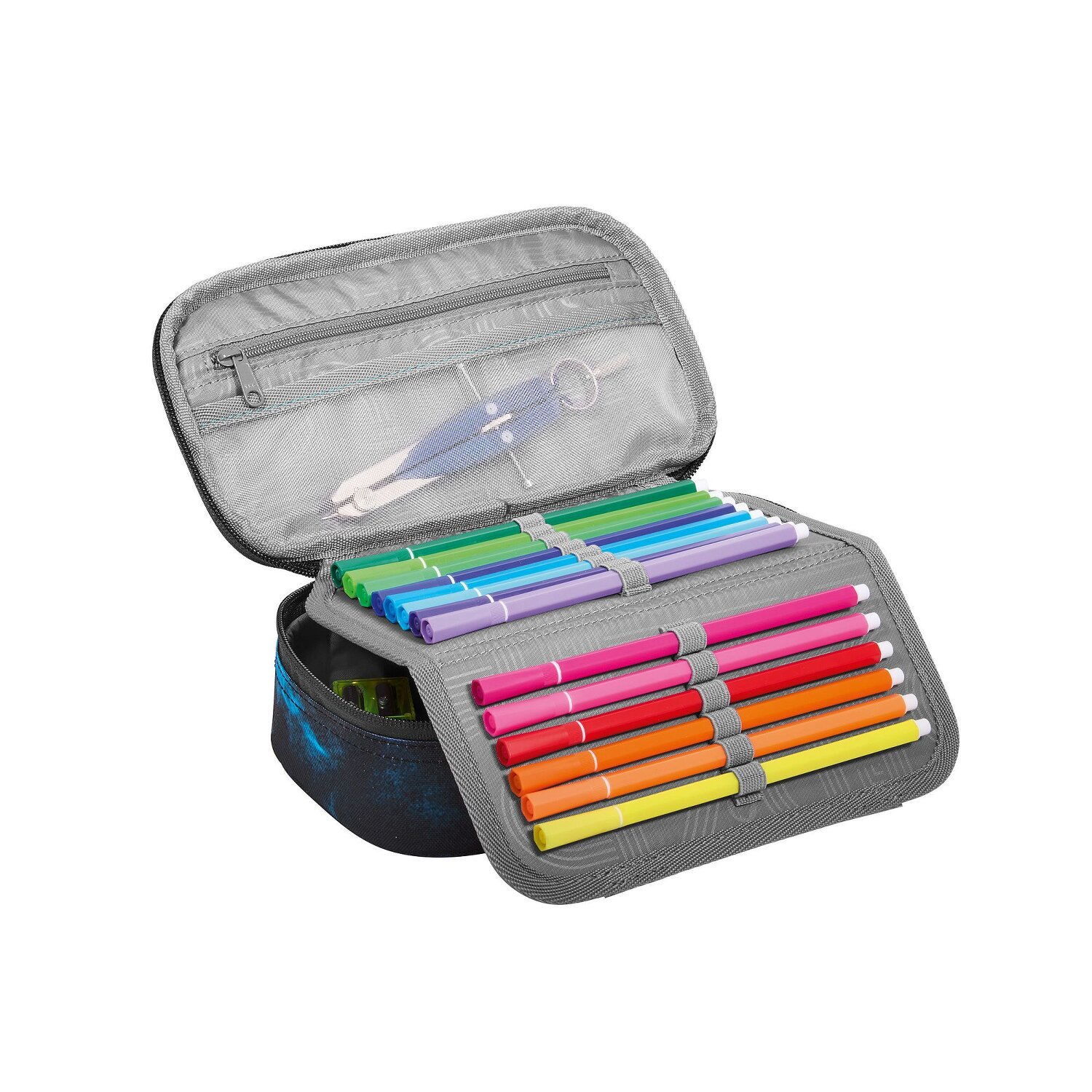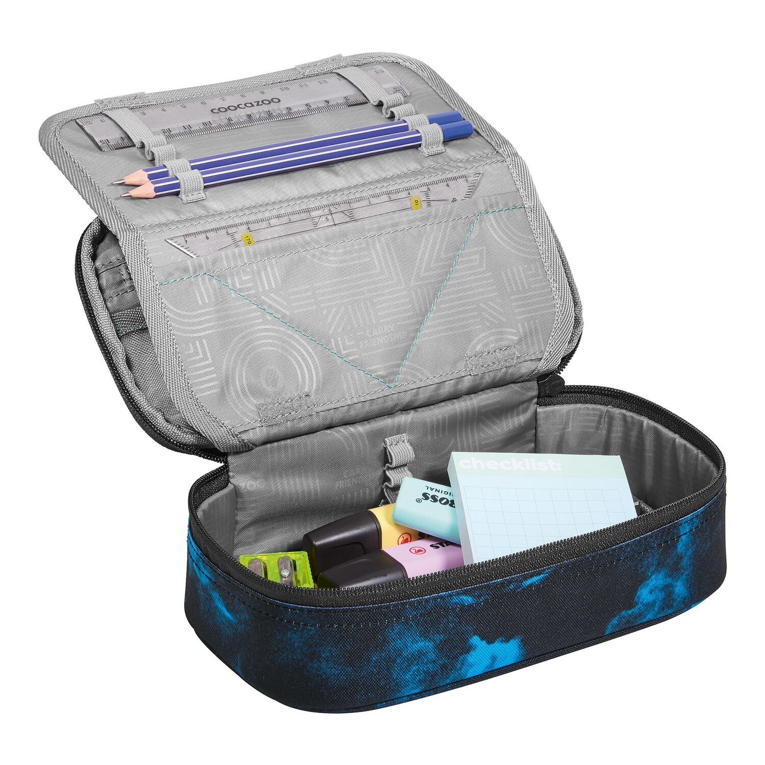 Damit startet der Unterricht mit Spaß: das coocazoo Schlampermäppchen wird euer ständiger Begleiter sein! Ein besonderes Highlight sind die vielfältigen Stiftelaschen, wo jedes Schreibutensil seinen Platz findet. Ausgestattet mit Reißverschlussfach, Netzfach und einer nützlichen Ausrüstungsschlaufe, ist das Mäppchen ein echter Allrounder. Der robuste Reißverschluss öffnet und schließt ganz leicht - perfekt um schnell an deine Stifte zu kommen. Das strapazierfähige Polyester macht es langlebig und widerstandsfähig. Nicht nur die perfekte Ordnungshelfer, sondern auch ein cooles Accessoire für jeden kleinen Schulmeister! Im Lieferumfang enthalten ist nur Das Lineal und ein Geodreieck. Bilder können vom Lieferumfang abweichen.