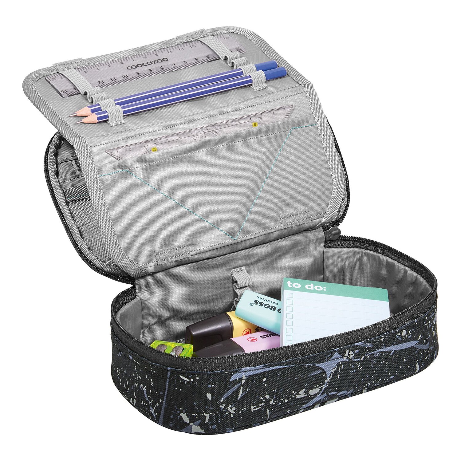 Damit startet der Unterricht mit Spaß: das coocazoo Schlampermäppchen wird euer ständiger Begleiter sein! Ein besonderes Highlight sind die vielfältigen Stiftelaschen, wo jedes Schreibutensil seinen Platz findet. Ausgestattet mit Reißverschlussfach, Netzfach und einer nützlichen Ausrüstungsschlaufe, ist das Mäppchen ein echter Allrounder. Der robuste Reißverschluss öffnet und schließt ganz leicht - perfekt um schnell an deine Stifte zu kommen. Das strapazierfähige Polyester macht es langlebig und widerstandsfähig. Nicht nur die perfekte Ordnungshelfer, sondern auch ein cooles Accessoire für jeden kleinen Schulmeister! Im Lieferumfang enthalten ist nur Das Lineal und ein Geodreieck. Bilder können vom Lieferumfang abweichen.