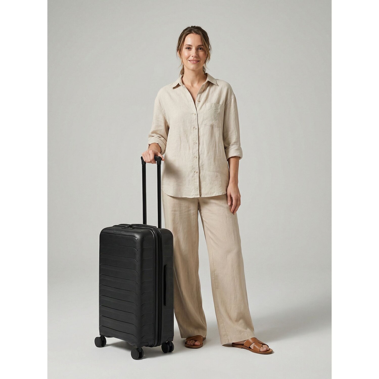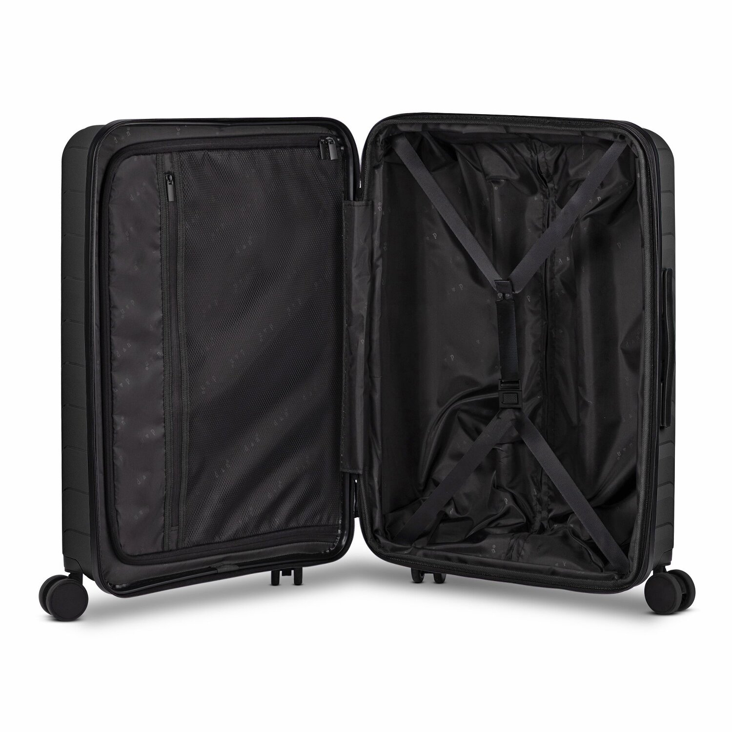- Ausstattung: Wäschefach, Netzfach, Kreuzpackgurt, Dehnfalte, arretierbarer Griff
